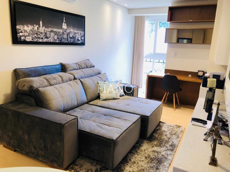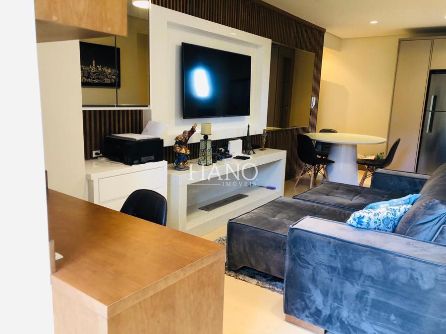 Apartamento mobiliado e equipado, composto por 01 dormitório, cozinha, área de serviço, churrasqueira, ar condicionado, hidrômetro individual, sala de estar e jantar, escritório, lareira, móveis planejados, aquecimento a gás e 01 vaga de garagem.