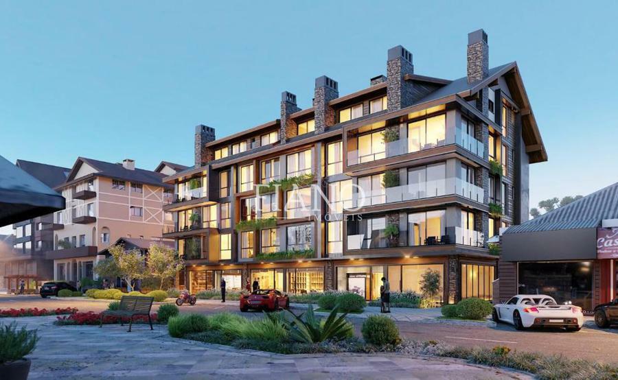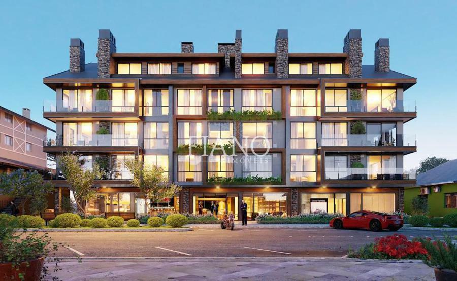 Apartamento de 1 suíte, lavabo, living integrado estar e jantar, cozinha com churrasqueira, esperas para split, calefação e lareira, esquadrias em PVC com vidros duplos, piso vinílico e porcelanato e uma vaga de garagem.