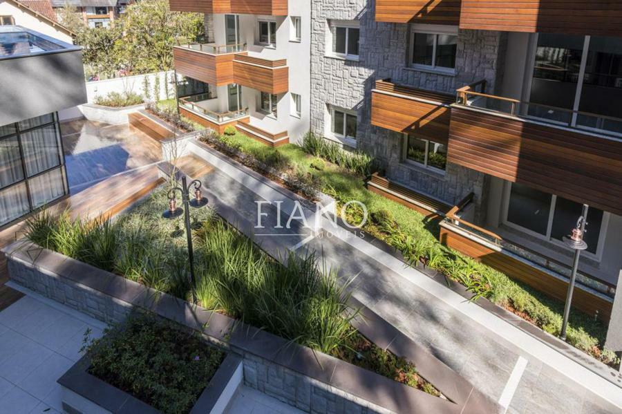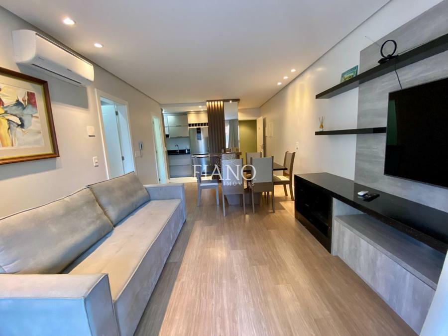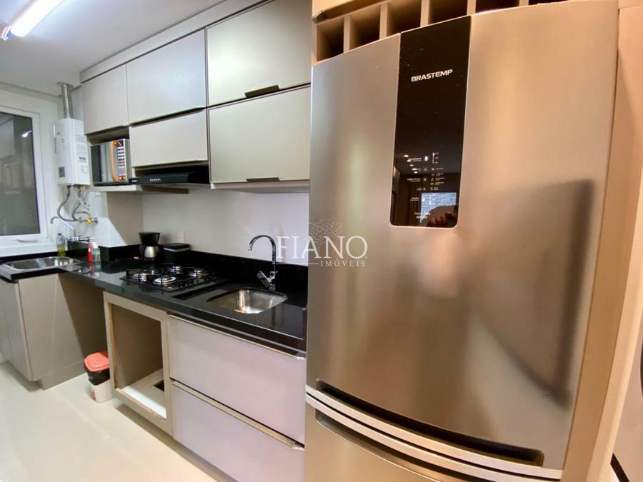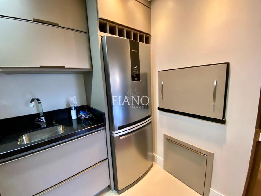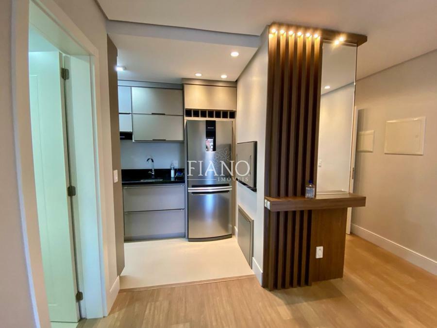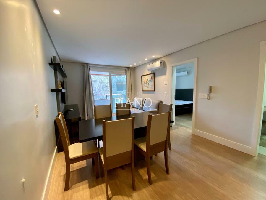 Apartamento de 01 suíte, lavabo, sala de estar e jantar com pé direito duplo, sacada, cozinha americana com churrasqueira, área de serviço.