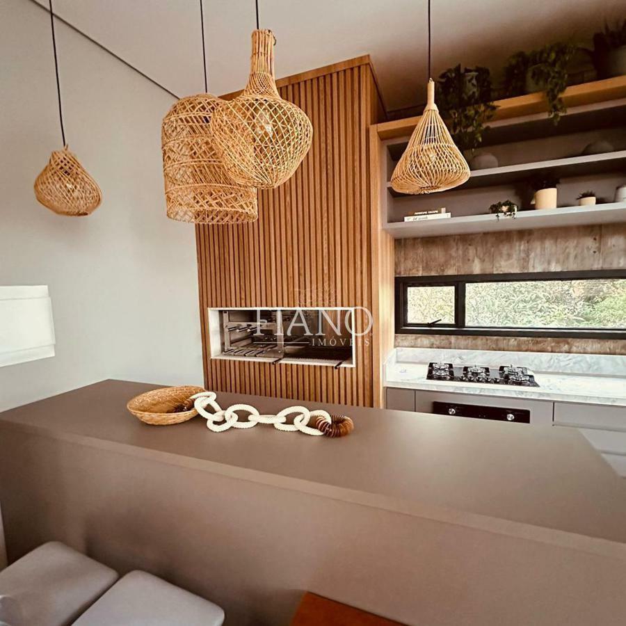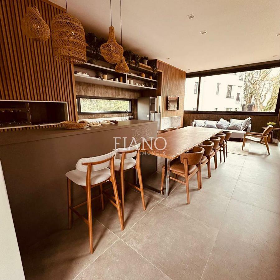 Apartamento de 1 dormitório, banho social, living integrado estar e jantar com sacada e espera para lareira, cozinha com churrasqueira, área de serviço, esquadrias de PVC com vidros duplos nas janelas dos dormitórios, espera de split nos dormitórios e área social e uma vaga de garagem.