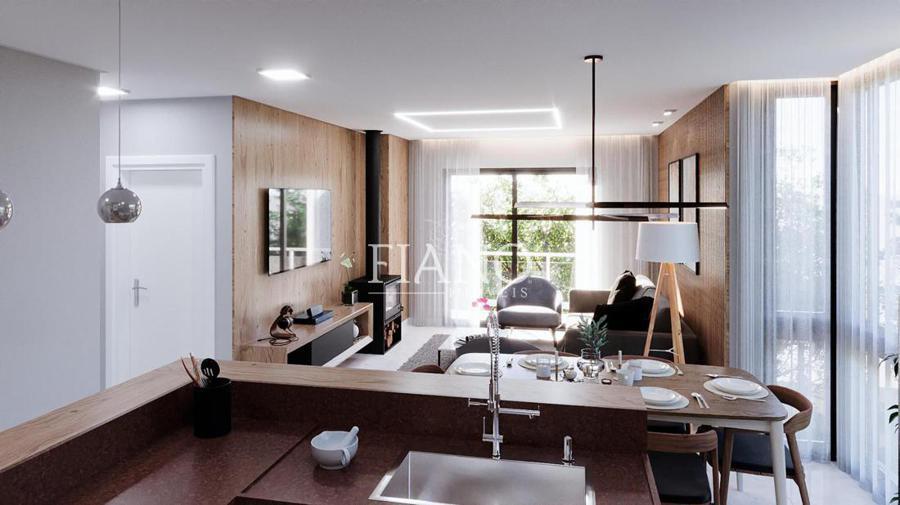 Todos os apartamentos contam com lavabo, cozinha integrada com área de serviço e churrasqueira, living com lareira, esquadrias pretas em PVC com vidros duplos, rebaixo em gesso, massa corrida nas paredes, piso vinílico e porcelanato.