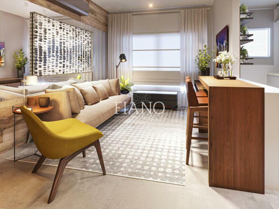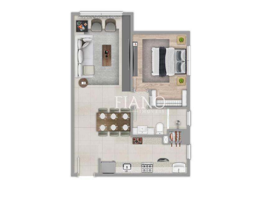 Apartamento 1 dormitório, banho social, sala estar e jantar com sacada integrada, cozinha com churrasqueira, área de serviço, esquadrias em pvc com vidros duplos.