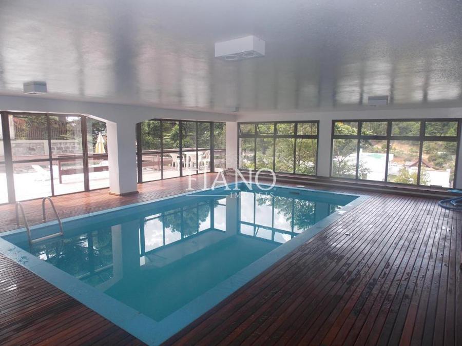 Condomínio com piscina aquecida, sauna, salão de festas e playground.