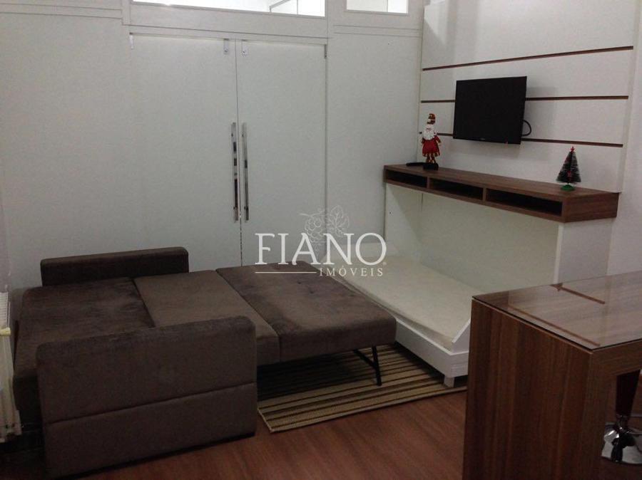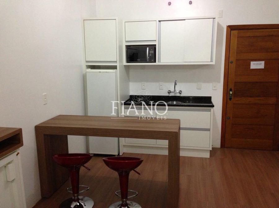 Apartamento mobiliado, 1 dormitório com sacada, banheiro social, cozinha e sala de estar integradas, calefação instalados e uma vaga de garagem.