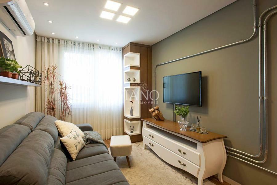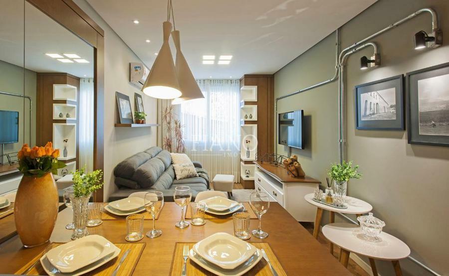 Apartamento 1 dormitório, banho social, sala estar e jantar com sacada integrada, cozinha americana e área de serviço, split e água quente instalados, espera de calefação.
