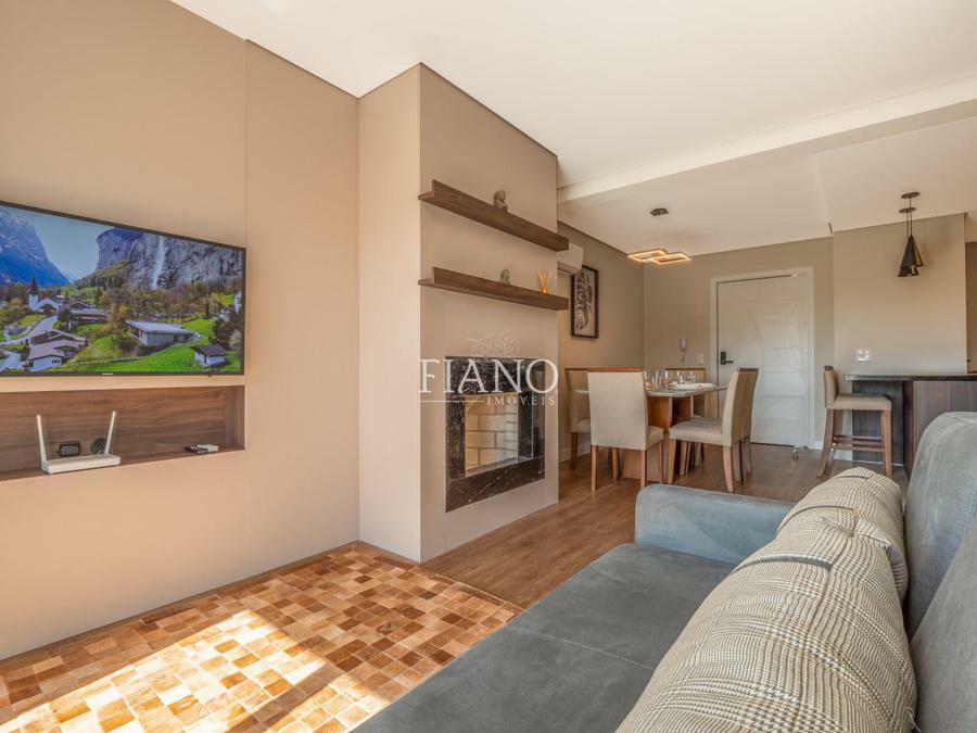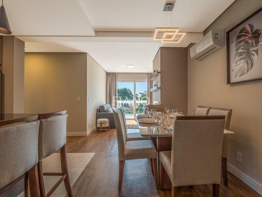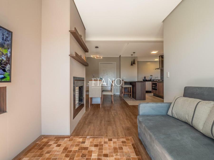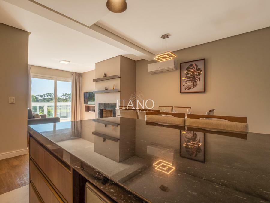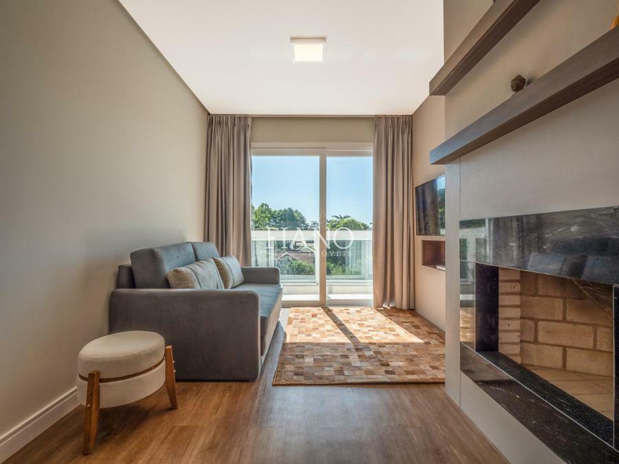 Apartamento mobiliado de 2 dormitórios sendo 1 suíte, living integrado estar e jantar com lareira, cozinha com churrasqueira, área de serviço, banho social, piso laminado, porcelanato de alto padrão, esquadrias externas em PVC, água quente e split instalados, vidros duplos e 01 vaga de garagem.
