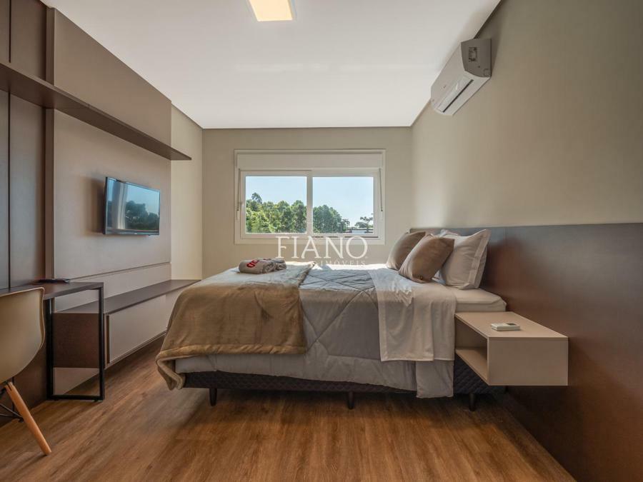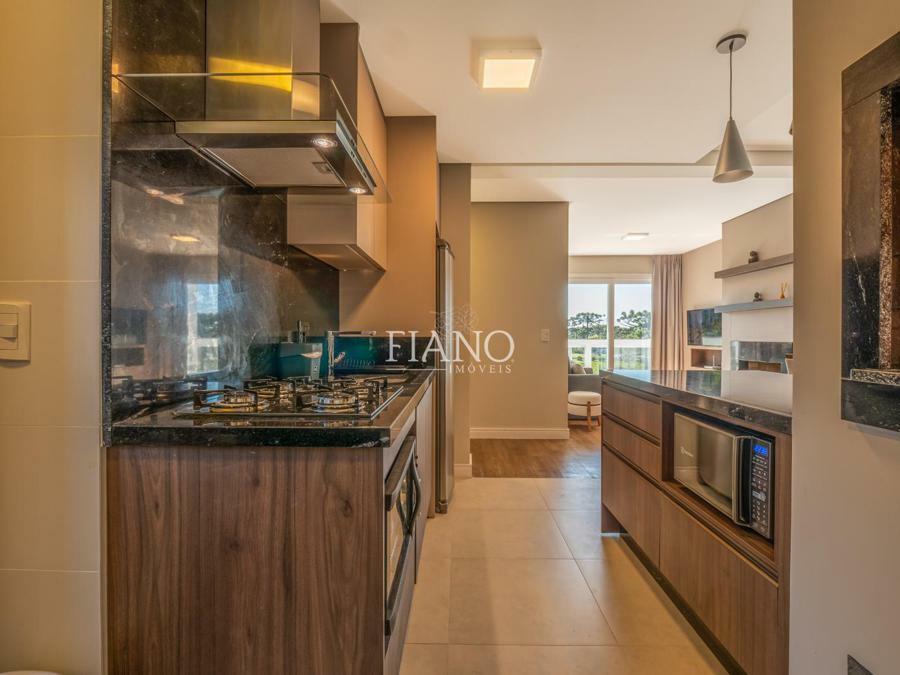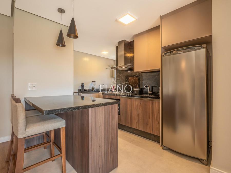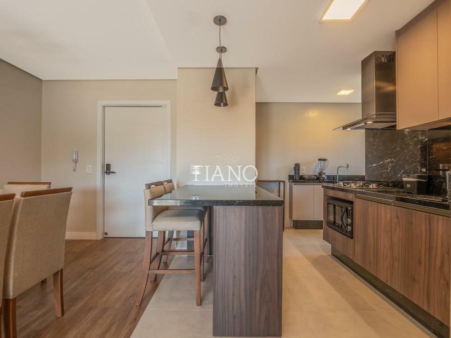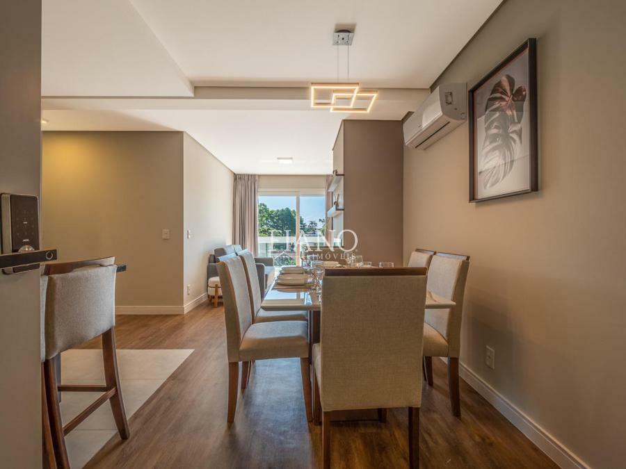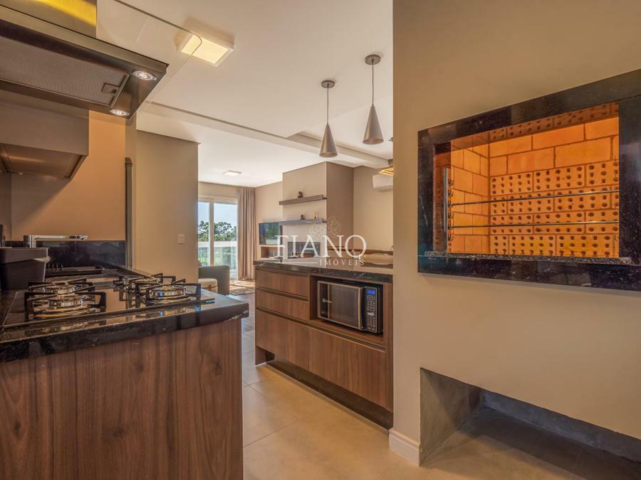 Apartamento mobiliado de 2 dormitórios sendo 1 suíte, living integrado estar e jantar com lareira, cozinha com churrasqueira, área de serviço, banho social, piso laminado, porcelanato de alto padrão, esquadrias externas em PVC, água quente e split instalados, vidros duplos e 01 vaga de garagem.