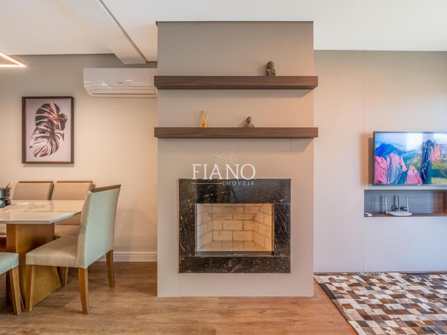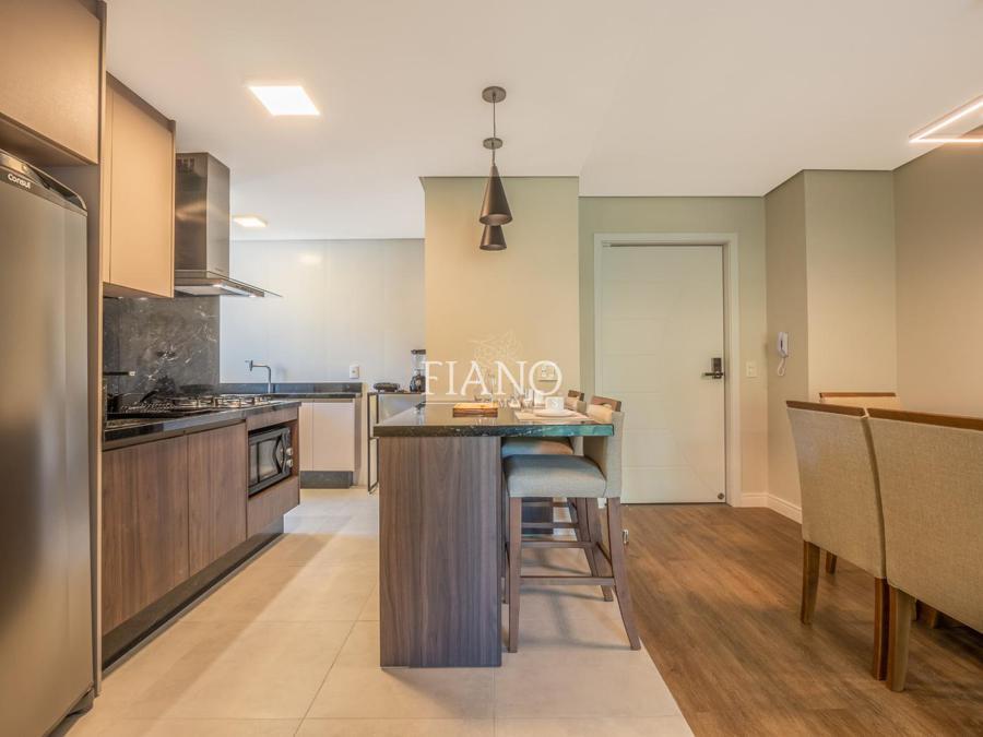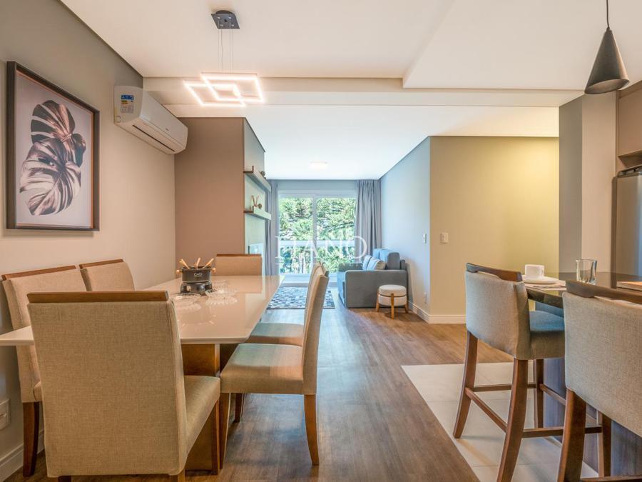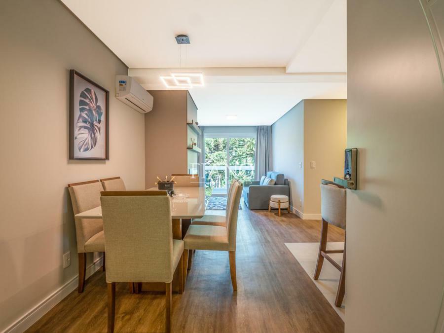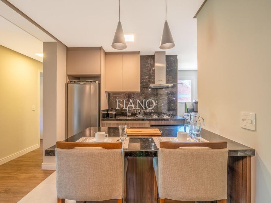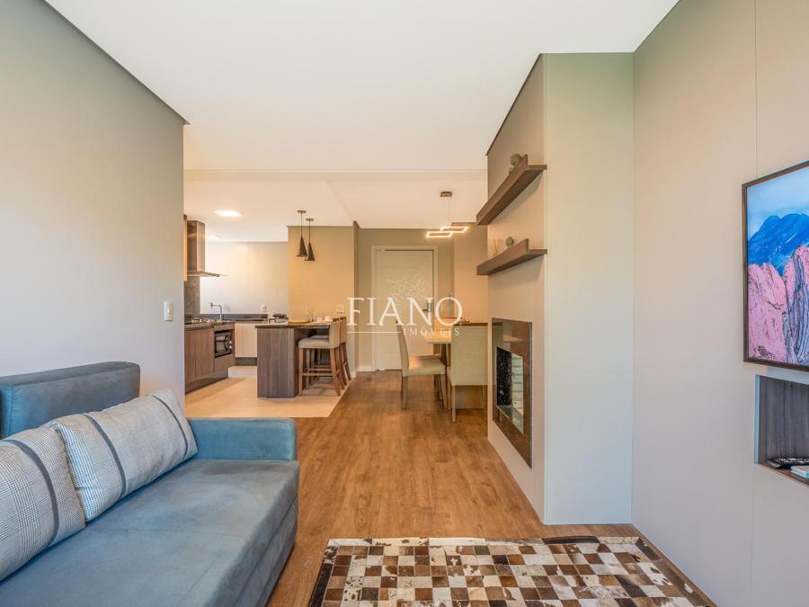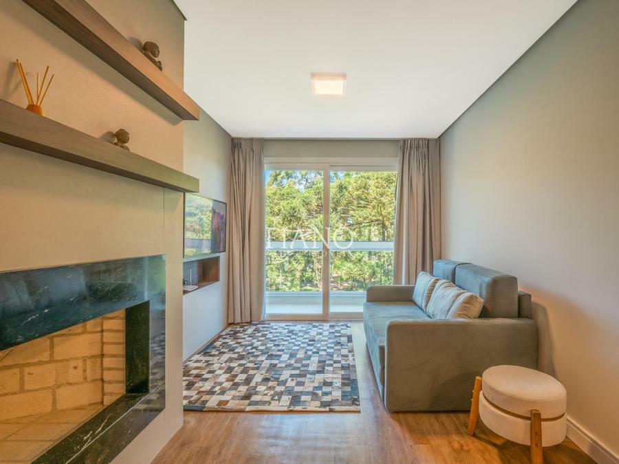 Apartamento mobiliado de 2 dormitórios sendo 1 suíte, living integrado estar e jantar com lareira, cozinha com churrasqueira, área de serviço, banho social, piso laminado, porcelanato de alto padrão, esquadrias externas em PVC, água quente e split instalados, vidros duplos e 01 vaga de garagem.
