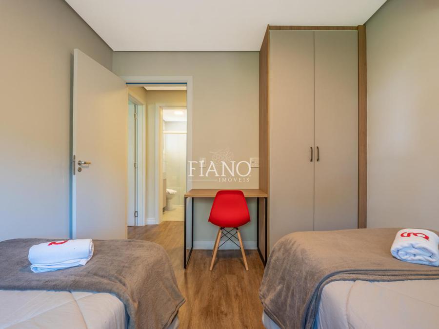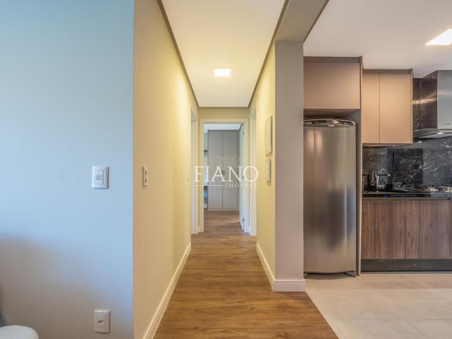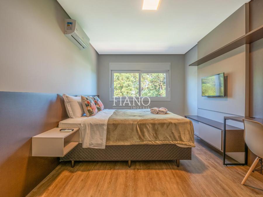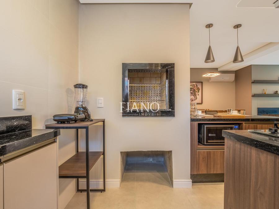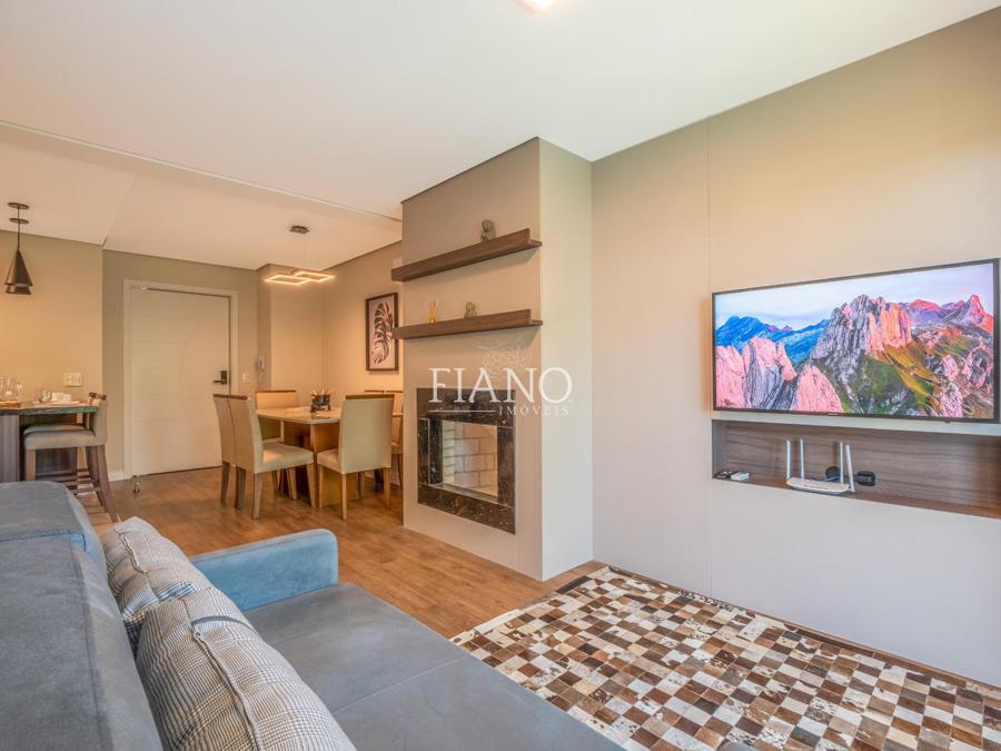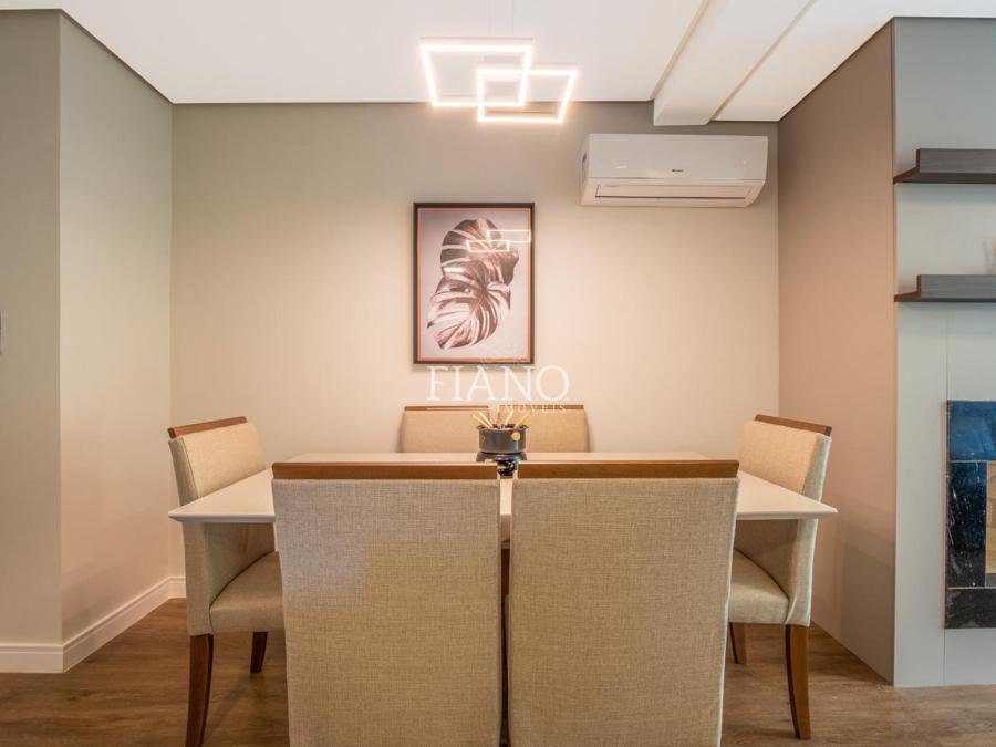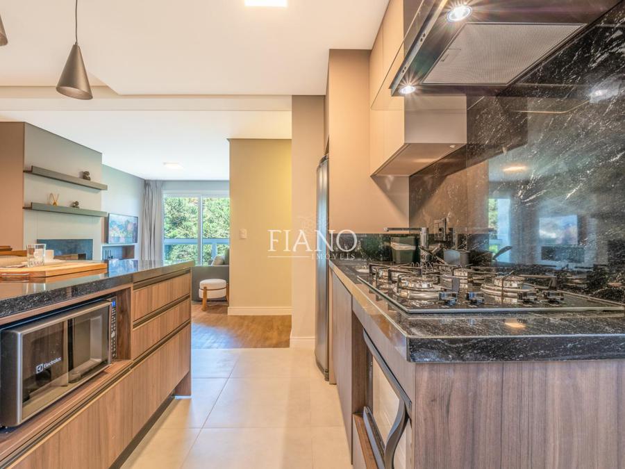 Apartamento mobiliado de 2 dormitórios sendo 1 suíte, living integrado estar e jantar com lareira, cozinha com churrasqueira, área de serviço, banho social, piso laminado, porcelanato de alto padrão, esquadrias externas em PVC, água quente e split instalados, vidros duplos e 01 vaga de garagem.