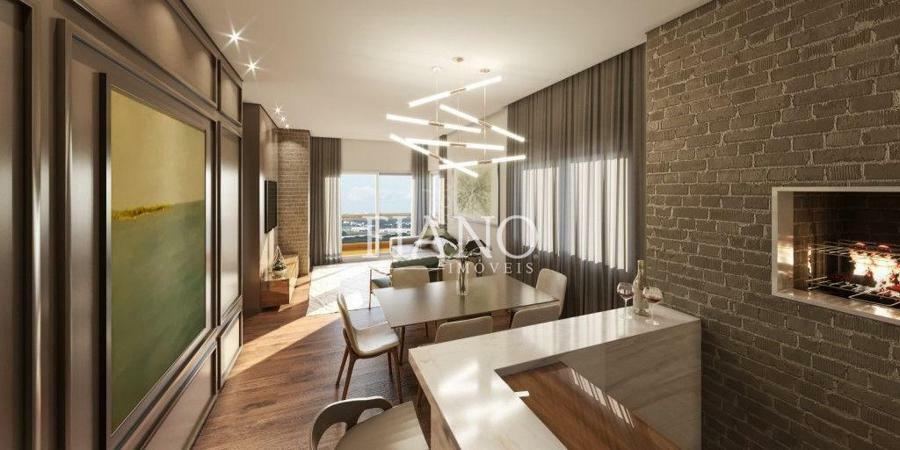 Apartamento de 02 suítes, lavabo, living integrado estar e jantar com sacada, cozinha com churrasqueira, área de serviço, esperas para água quente, split e lareira, esquadrias em PVC com vidros duplos e uma vaga de garagem.