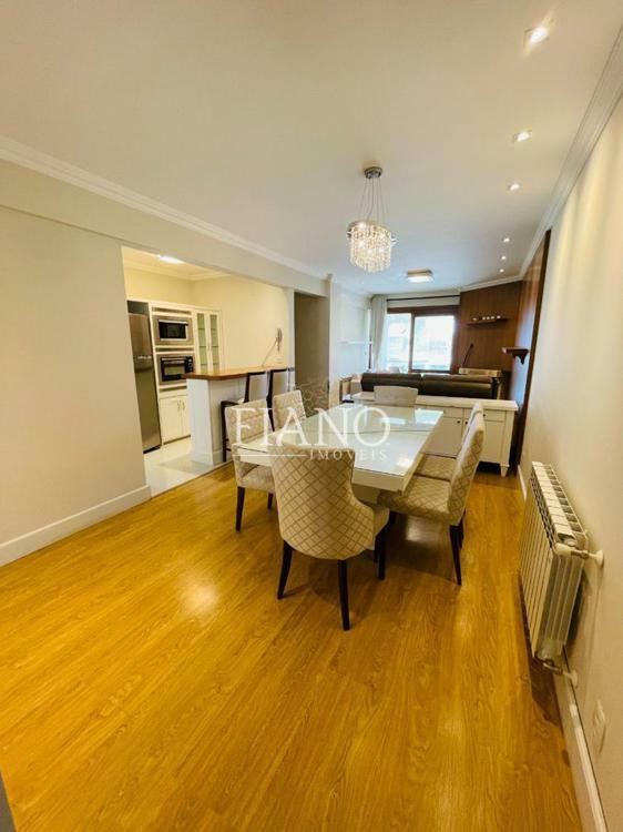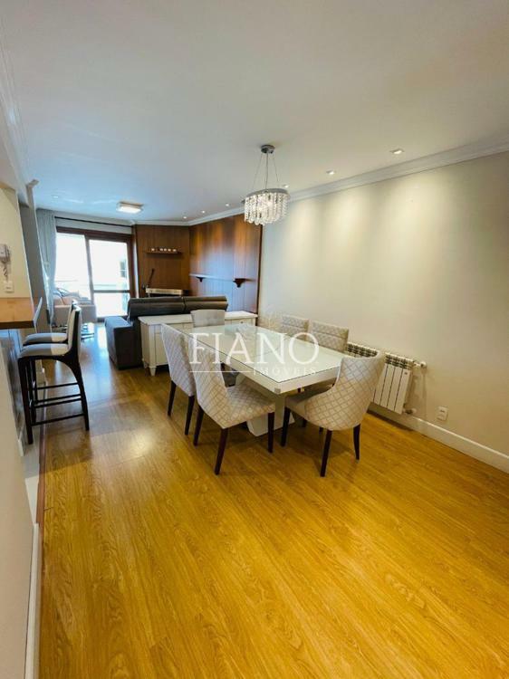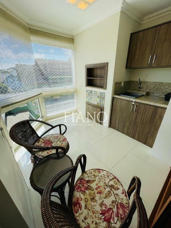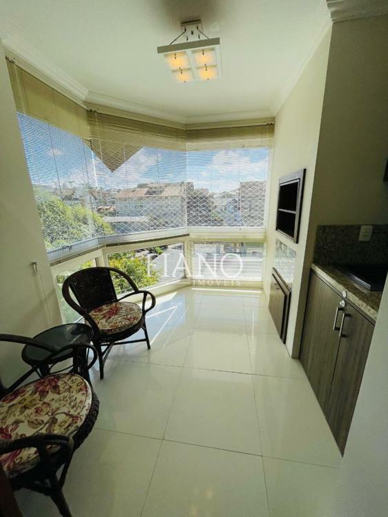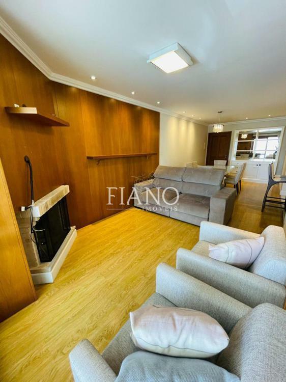 Apartamento mobiliado e equipado, 2 dormitórios (sendo 1 suíte), banho social, living integrado estar e jantar com lareira e sacada com churrasqueira, cozinha, área de serviço.