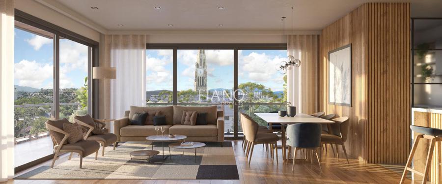 Sofisticado, elegante e único. O projeto arquitetônico, apresenta um edifício em estilo serrando, mesclando rusticidade com linhas contemporâneas, com materiais nobres como madeira, pedras e vidro.