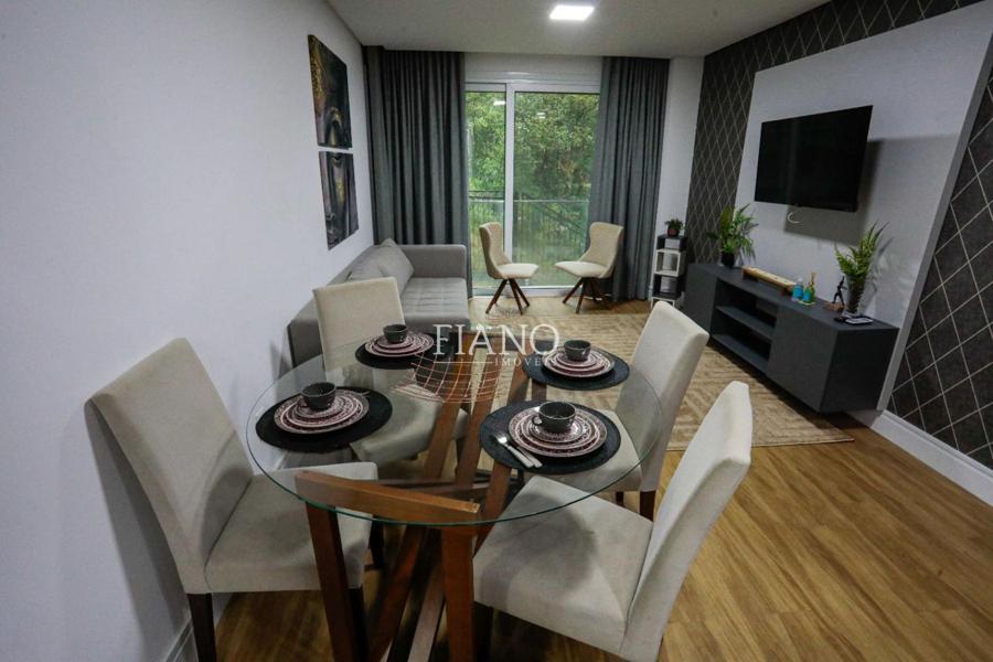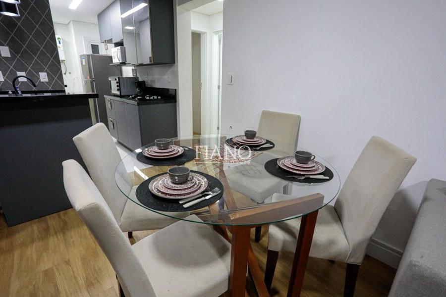 São 02 dormitórios (01 suíte), banho social, sala de estar, cozinha americana com churrasqueira, área de serviço.