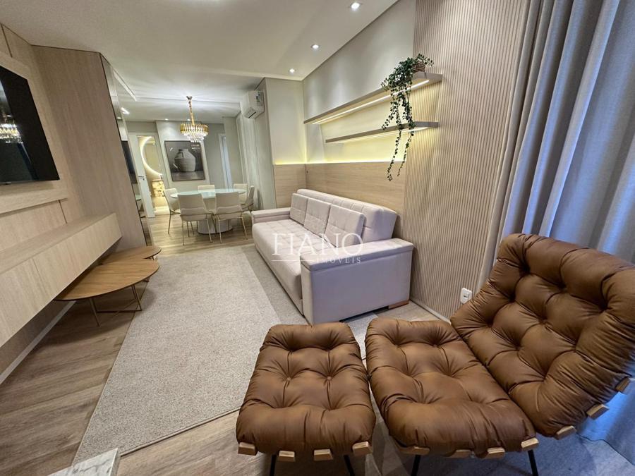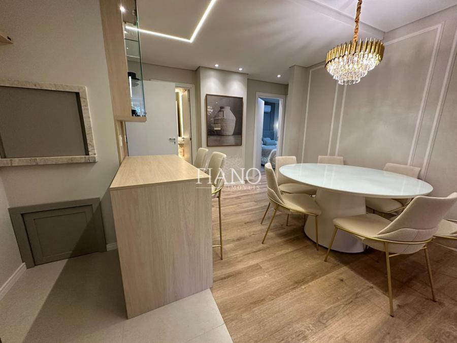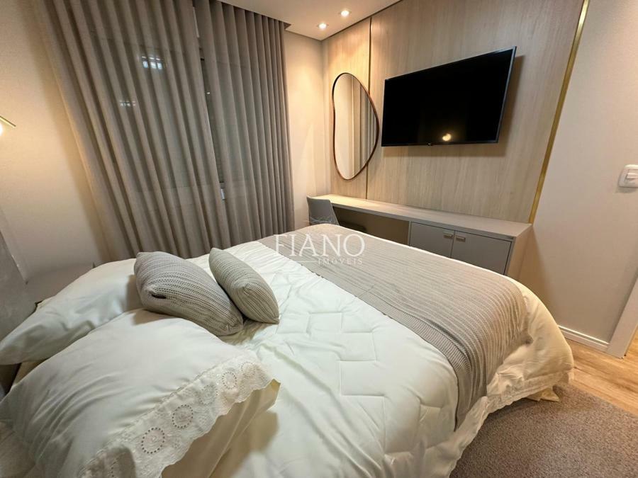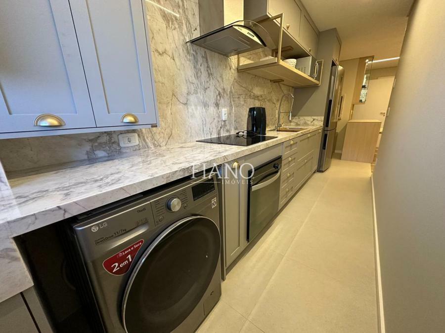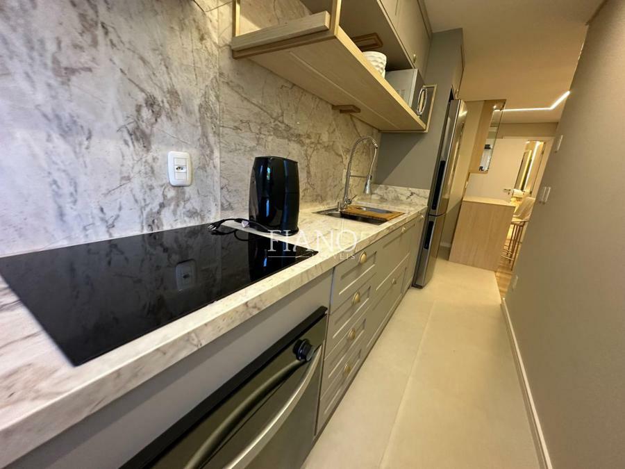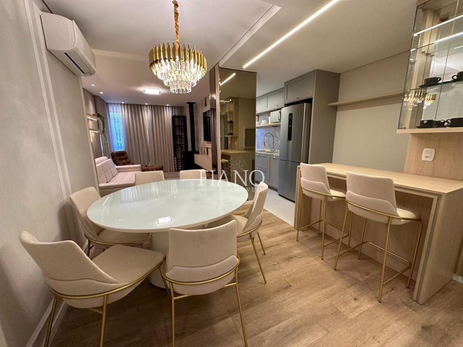 Apartamento totalmente mobiliado de 02 suítes, lavabo, sala de estar com lareira, cozinha com churrasqueira, área de serviço, split e 01 vaga de garagem.