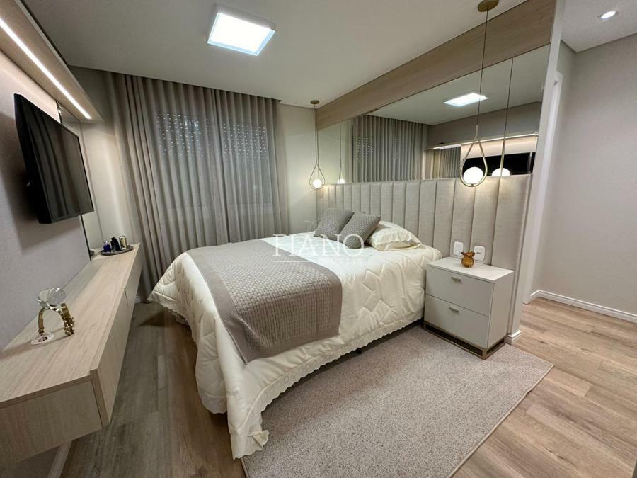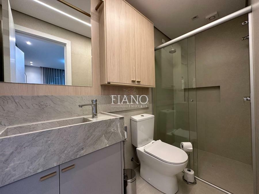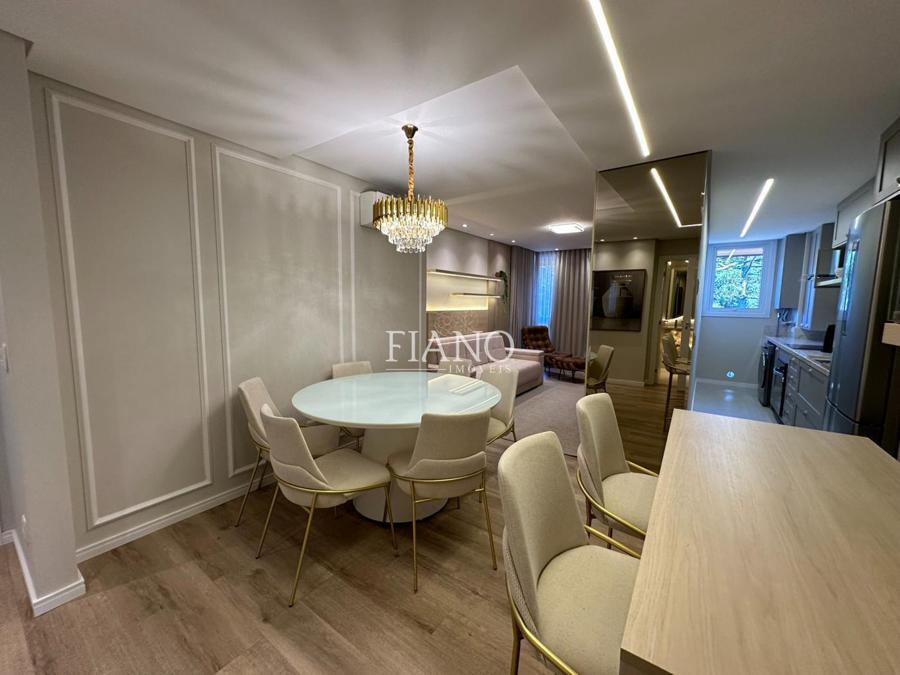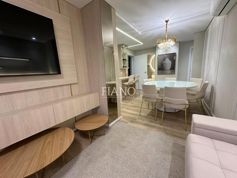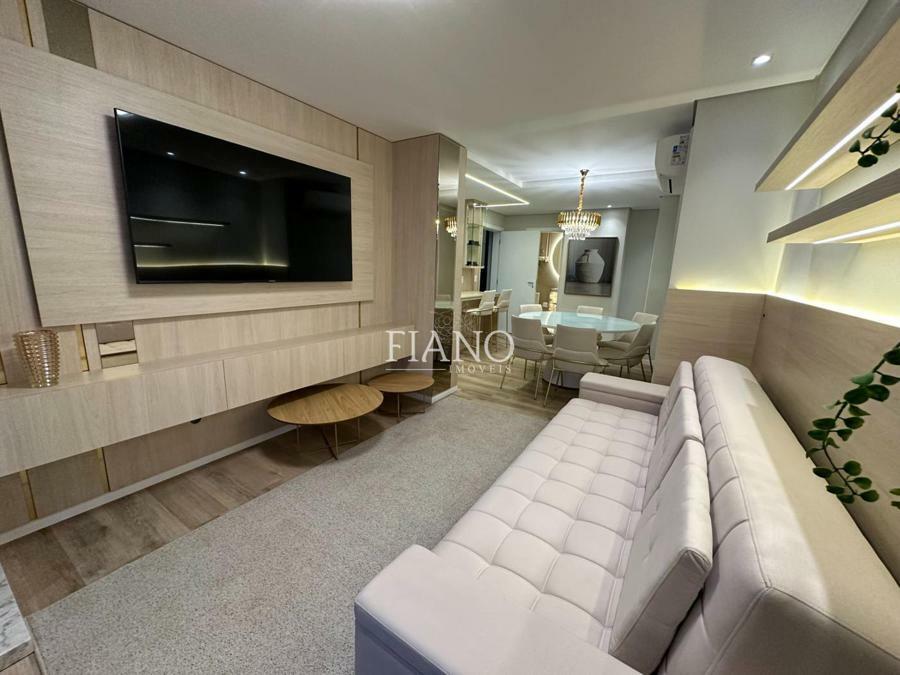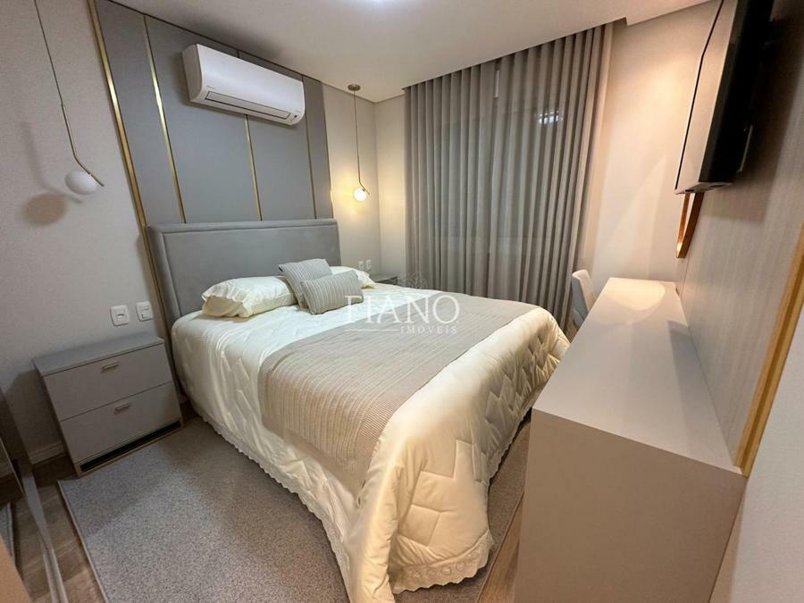Apartamento totalmente mobiliado de 02 suítes, lavabo, sala de estar com lareira, cozinha com churrasqueira, área de serviço, split e 01 vaga de garagem.