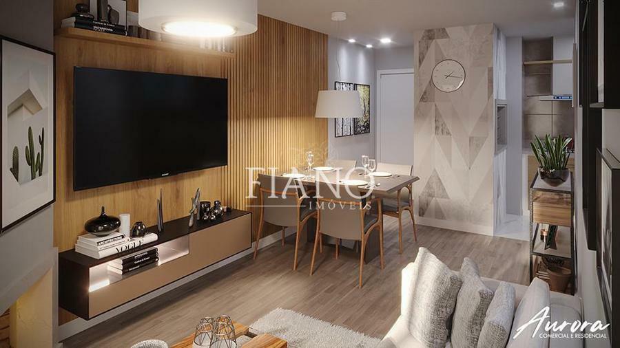 O Residencial Aurora terá apartamentos compostos por 01 dormitório; 01 suíte; 02 dormitórios (01 suíte) ou 03 dormitórios (01 suíte); churrasqueira, esperas para lareira e split, esquadrias em PVC com vidro duplo, pisos laminado e porcelanato, massa corrida nas paredes e forro em gesso.