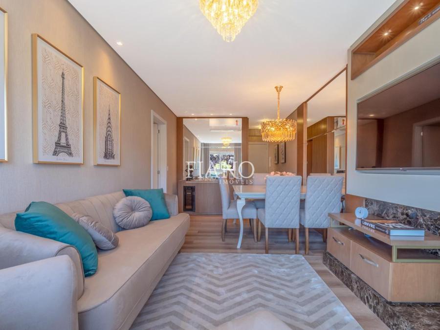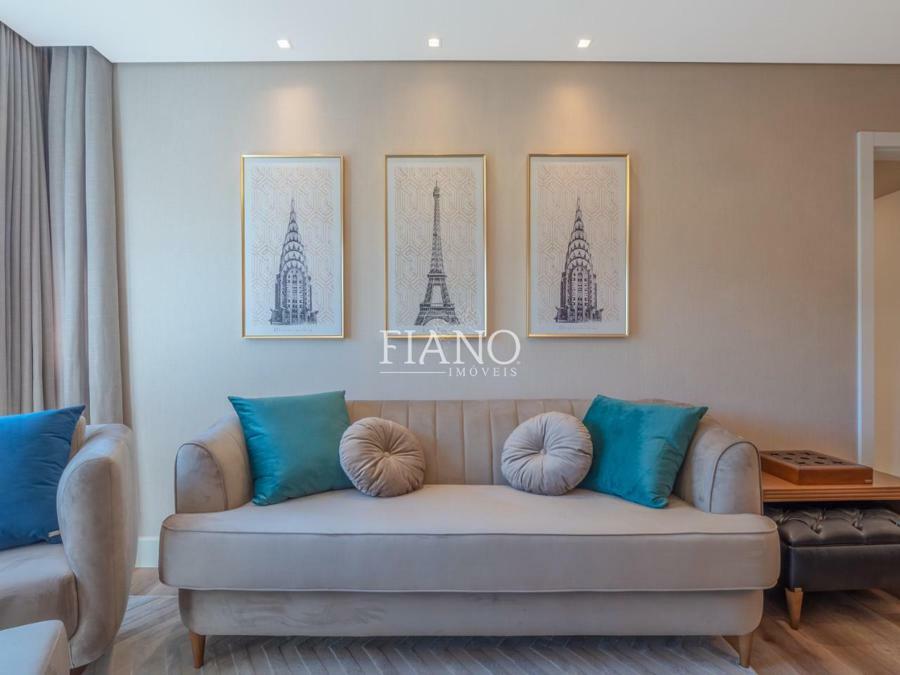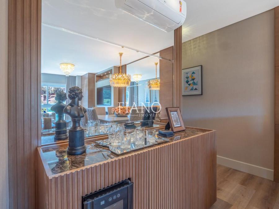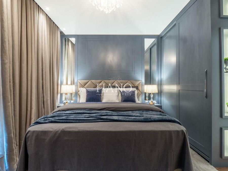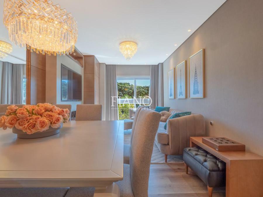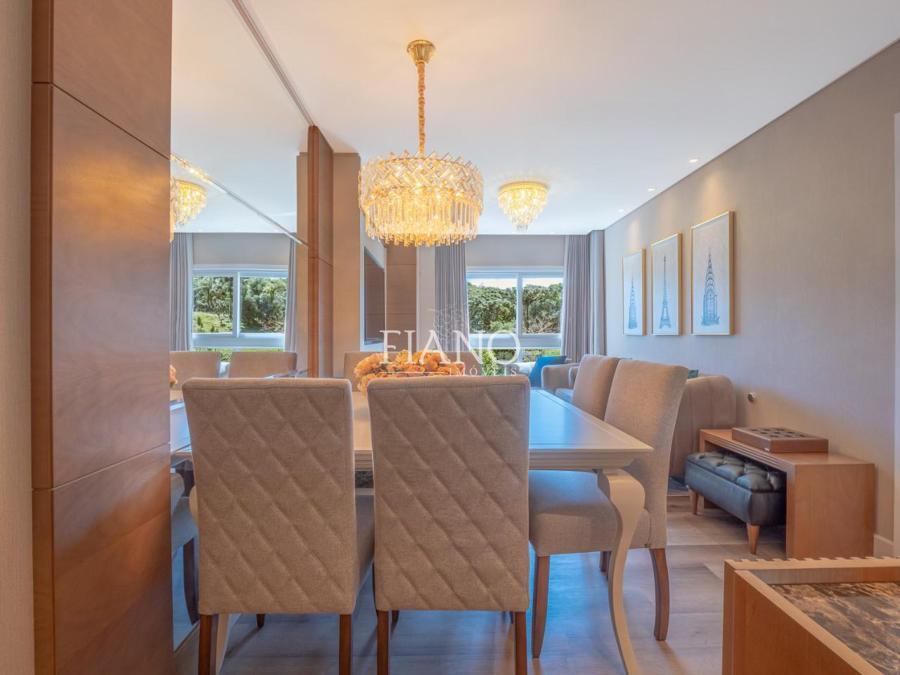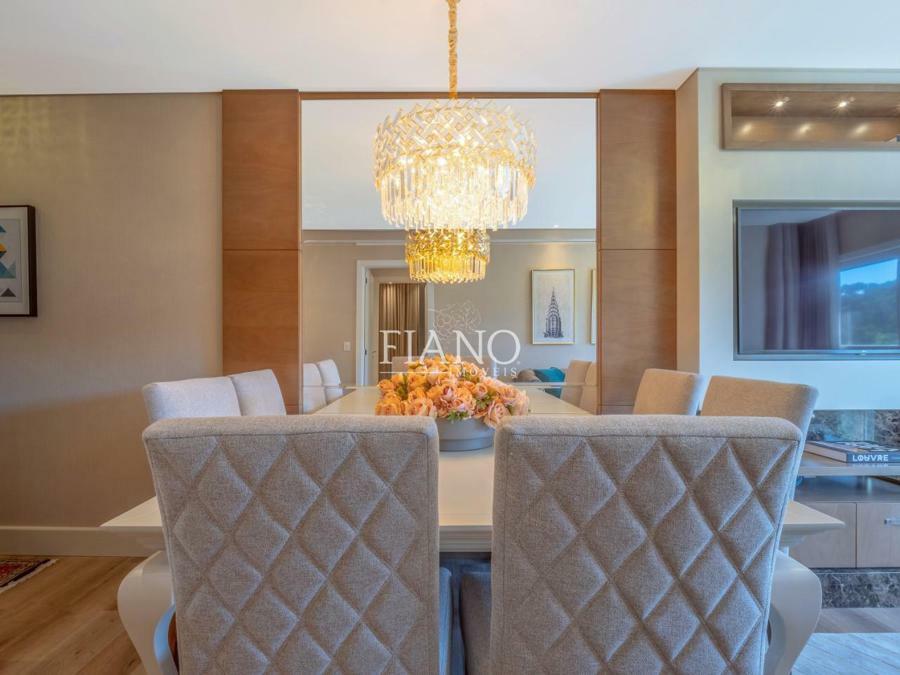 Apartamento no estilo contemporâneo em alto padrão, mobiliado, decorado e equipado, 2 suítes, lavabo, ambientes integrados entre jantar e estar com lareira no design canadense, cozinha com churrasqueira, área de serviço.