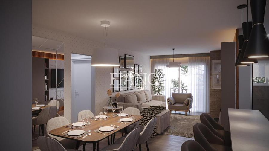 Apartamento de 2 suítes, lavabo, living integrado estar e jantar com sacada, cozinha com churrasqueira, área de serviço e 2 vagas de garagem.