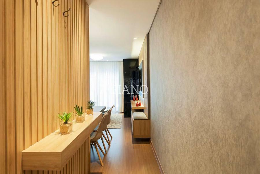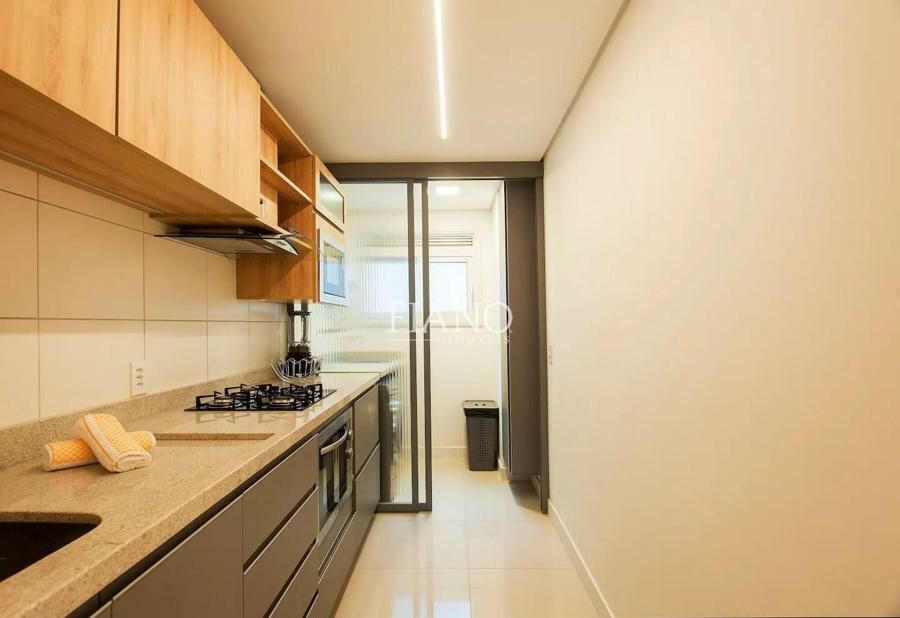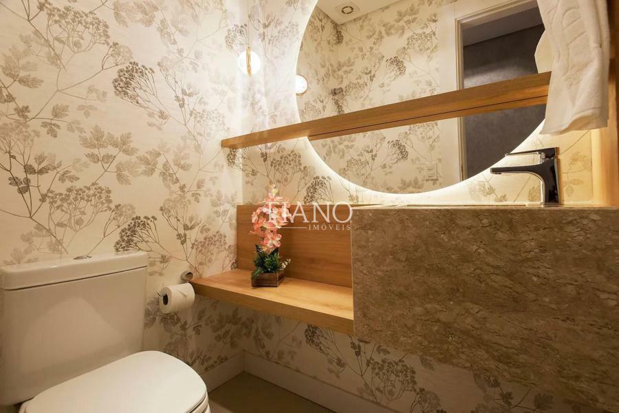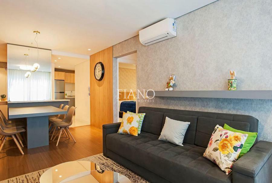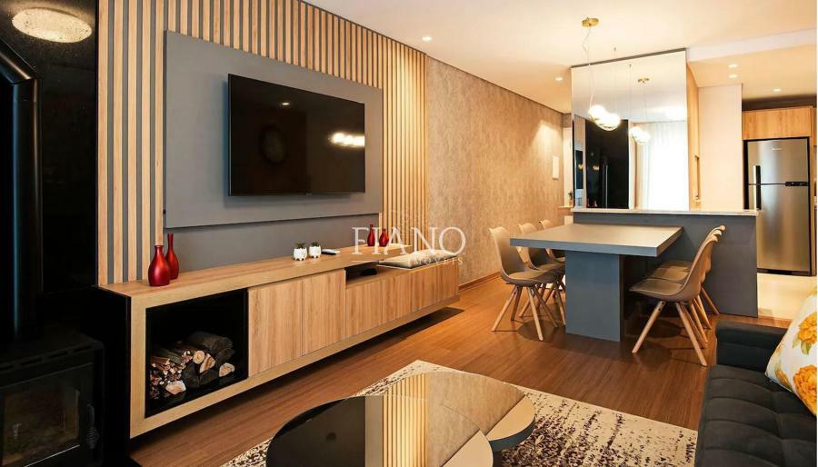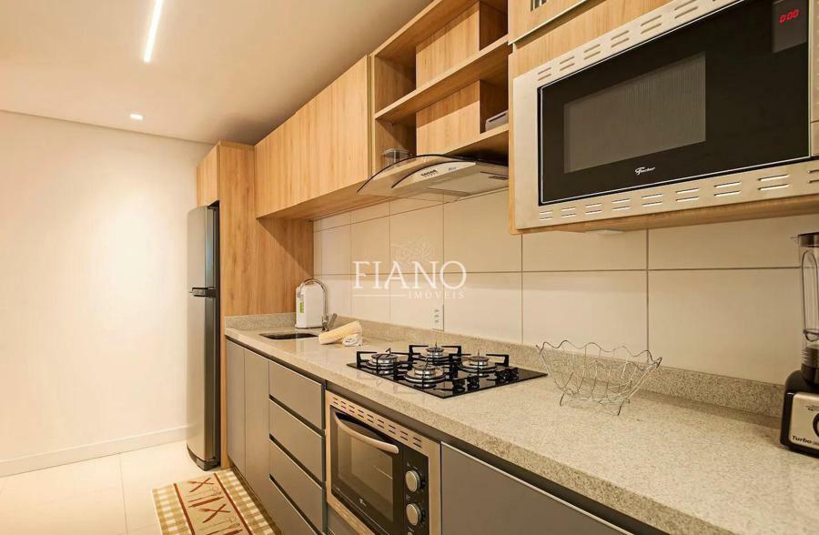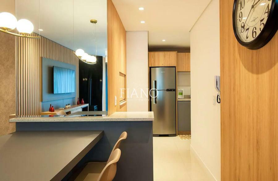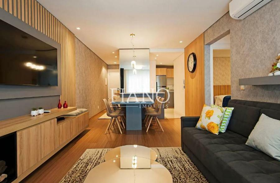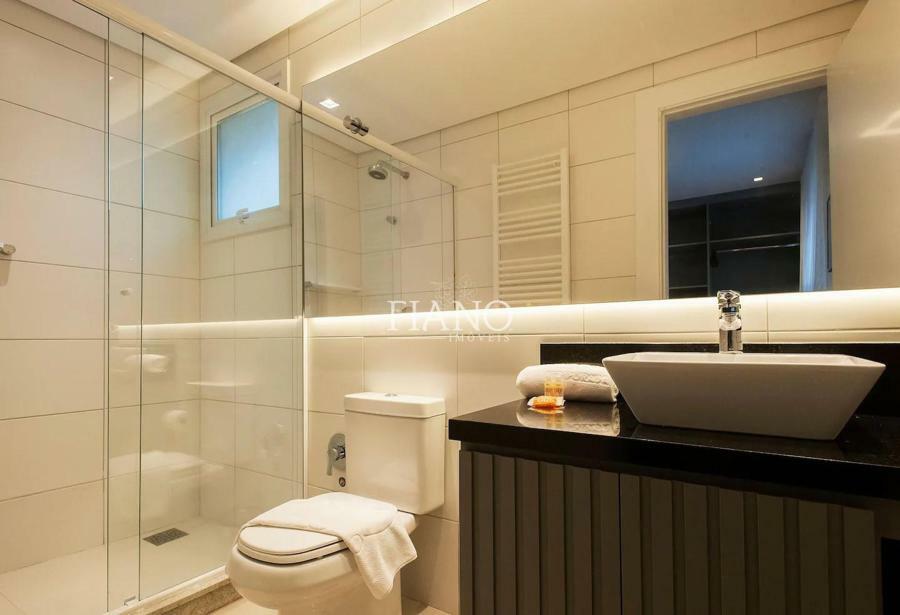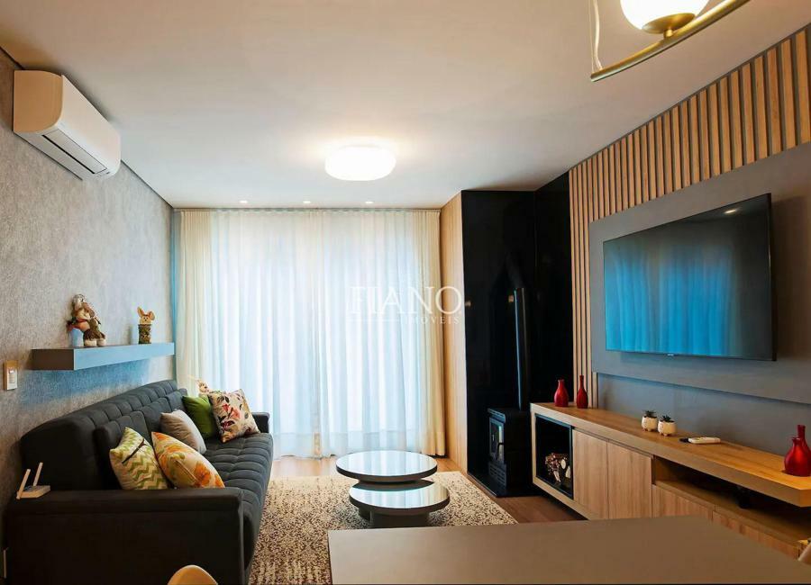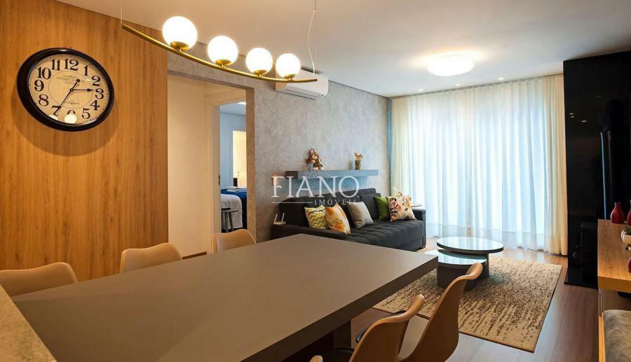 Apartamento finamente mobiliado e decorado de 2 suítes, lavabo, sala de jantar e sala de estar com sacada integrada, lareira, cozinha americana com bancada e churrasqueira.