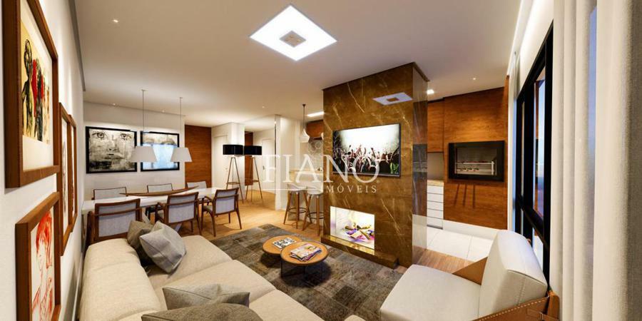 Apartamento com 2 suítes, lavabo, sala estar e jantar com sacada integrada e espera para lareira, cozinha americana com churrasqueira e área de serviço.