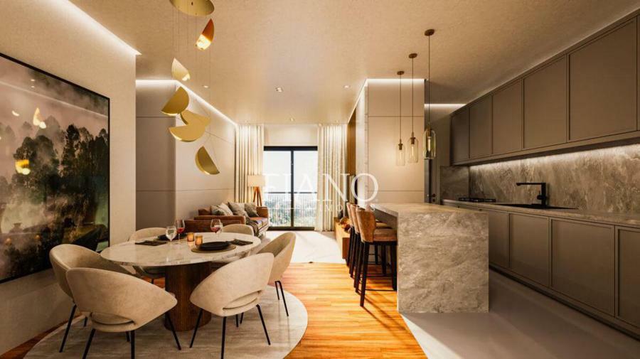 Apartamentos a partir de 54 m² com 1 dormitório, ou a partir de 87m², com duas suítes, lavabo, sala de estar e jantar, cozinha, serviço e balcão.