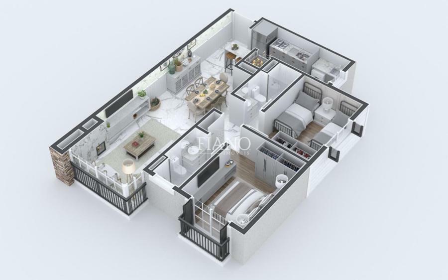 Apartamento de 68,08 m² privativos distribuídos em 02 dormitórios (sendo 01 suíte), salas de estar e jantar integradas, cozinha com churrasqueira, banheiro social, sacada, área de serviço.