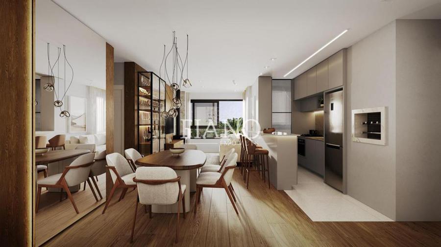 Sala de estar e jantar, sacada/varanda cozinha americana, churrasqueira, lavanderia, lavabo.