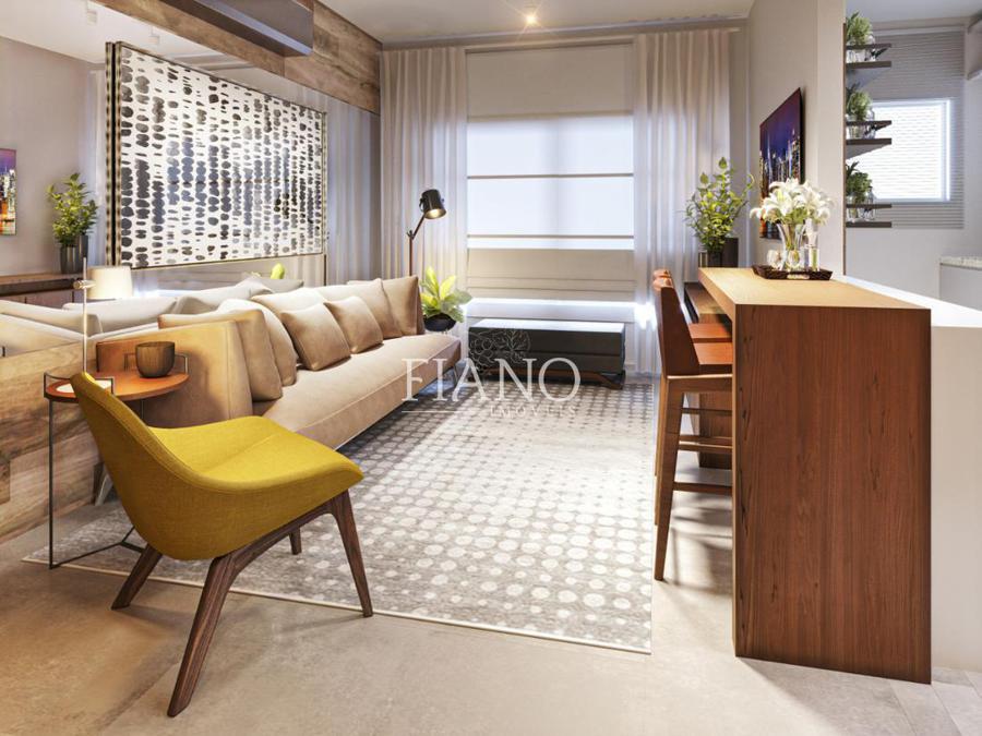 Apartamento 2 dormitórios (1 suíte), banho social, sala estar e jantar com sacada integrada, cozinha com churrasqueira, área de serviço, esquadrias em pvc com vidros duplos.
