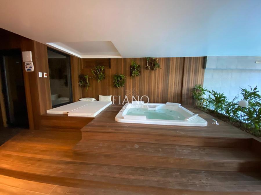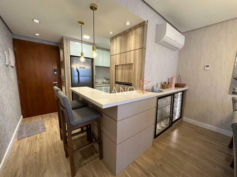 Apartamento 2 suítes, lavabo, sala estar e jantar com sacada integrada com vista para jardim, cozinha americana com churrasqueira e área de serviço.