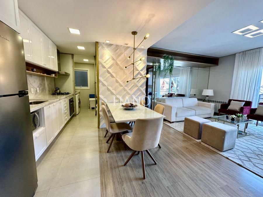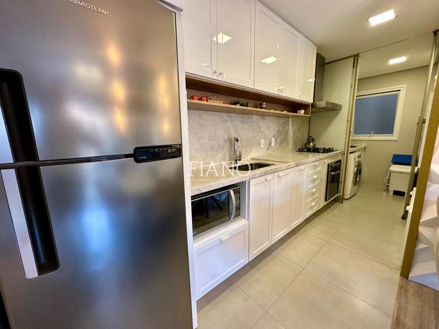 São 02 dormitórios (01 suíte), banheiro social, sala de estar e jantar com sacada, lareira ecológica, cozinha americana com churrasqueira, área de serviço.