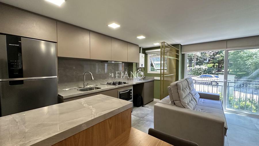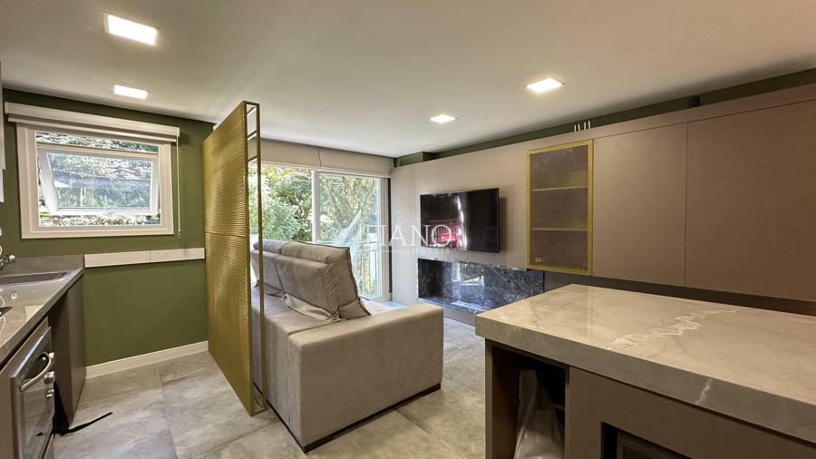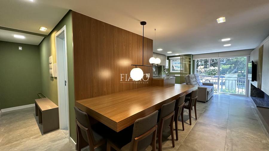 Apartamento mobiliado e equipado, composto por 02 suítes, lavabo, sala estar e jantar com sacada, cozinha americana com churrasqueira, área de serviço, lareira ecológica, splits e água quente instalados, espera para calefação, piso porcelanato, esquadrias em PVC vidros duplos excelente orientação solar e 1 vaga de garagem.