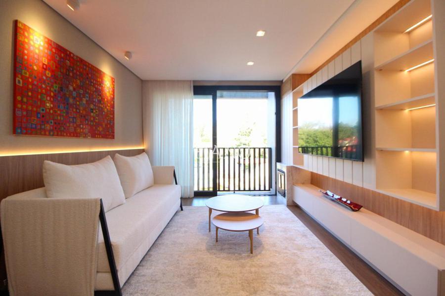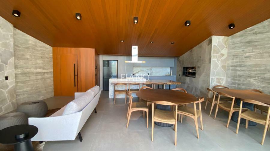 Apartamento com acabamentos de alto padrão, 2 suítes, lavabo, sala estar e jantar com sacada integrada, cozinha com churrasqueira, esquadrias em PVC com vidros duplos, área de serviço, rebaixo em gesso.