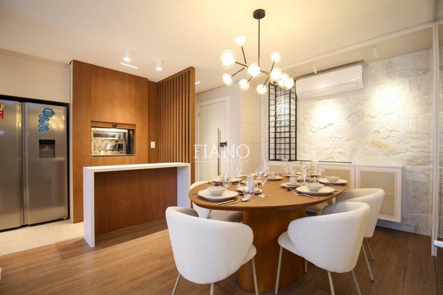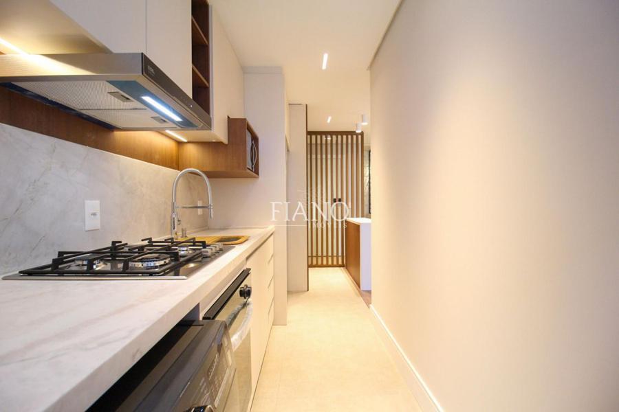 Apartamento com acabamentos de alto padrão, 1 suíte, lavabo, sala estar e jantar com sacada integrada, cozinha com churrasqueira, esquadrias em PVC com vidros duplos, área de serviço, rebaixo em gesso.