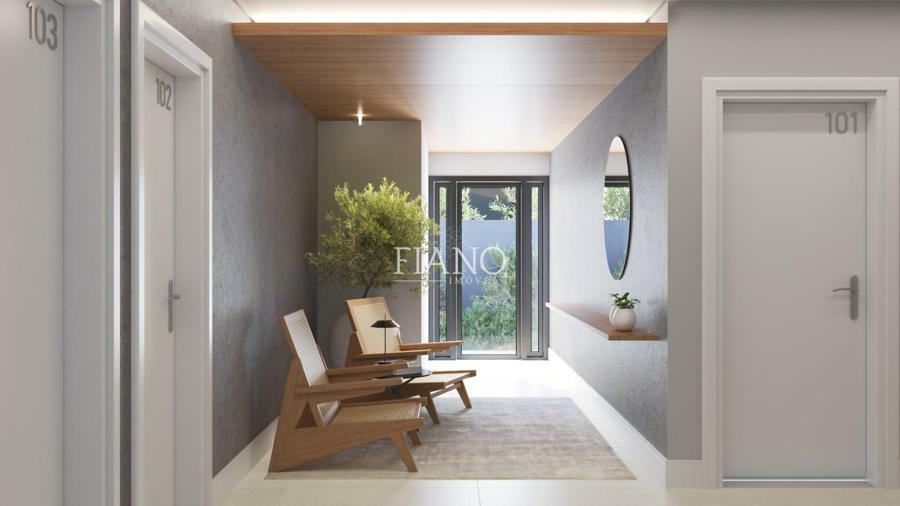 Apartamentos com 2 dormitórios (1 suíte). Sala de estar e jantar, cozinha americana, banho social, área de serviço.