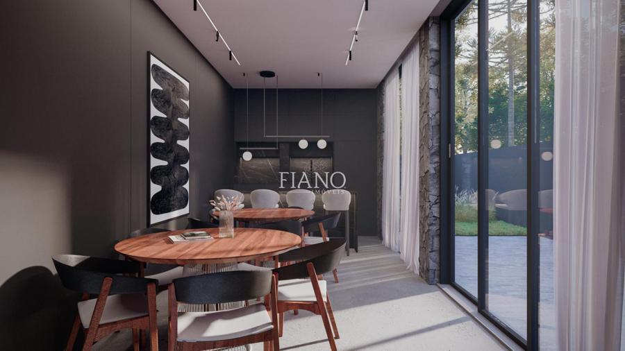 Esperas para split e lareira, piso aquecido nos banheiros, janelas com vidro duplo em PVC preto e floreiras.