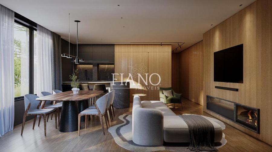 Esperas para split e lareira, piso aquecido nos banheiros, janelas com vidro duplo em PVC preto e floreiras.