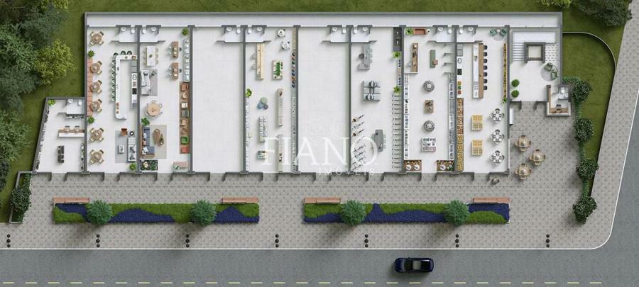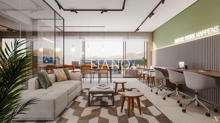 - Salas comerciais com metragens entre 98,23m² e 43,85m², e contam com pé direito duplo;