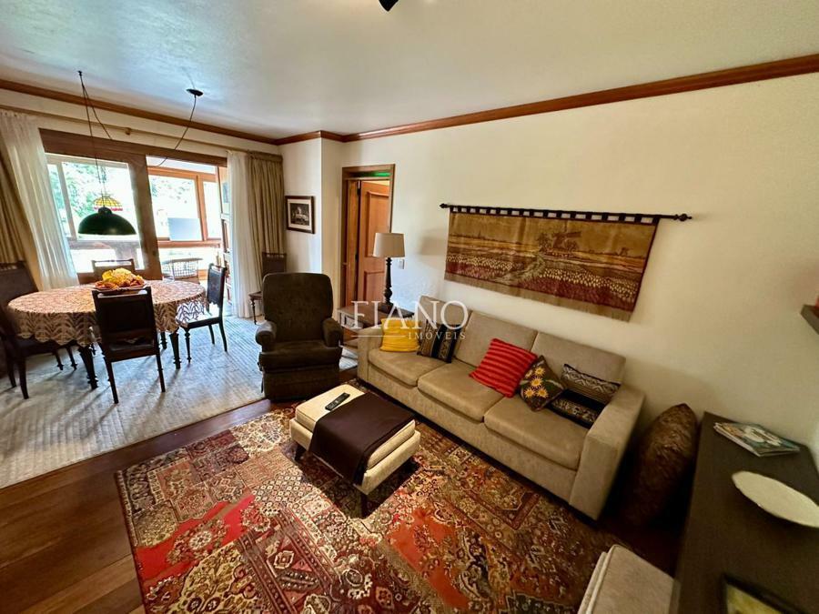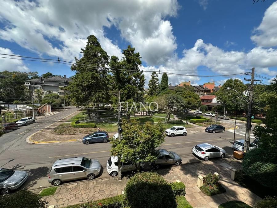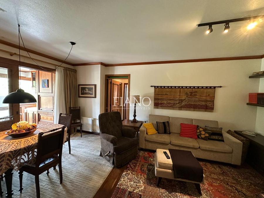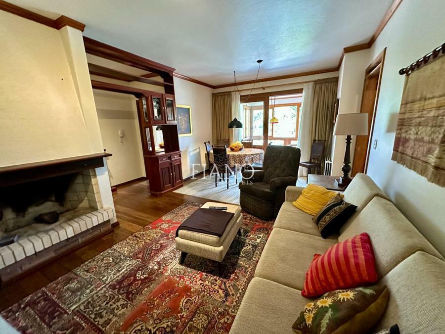 Apartamento com frente para a praça, 02 dormitórios (01 suíte), varanda com churrasqueira, sala de estar e jantar com lareira, cozinha, lavanderia, banho social.