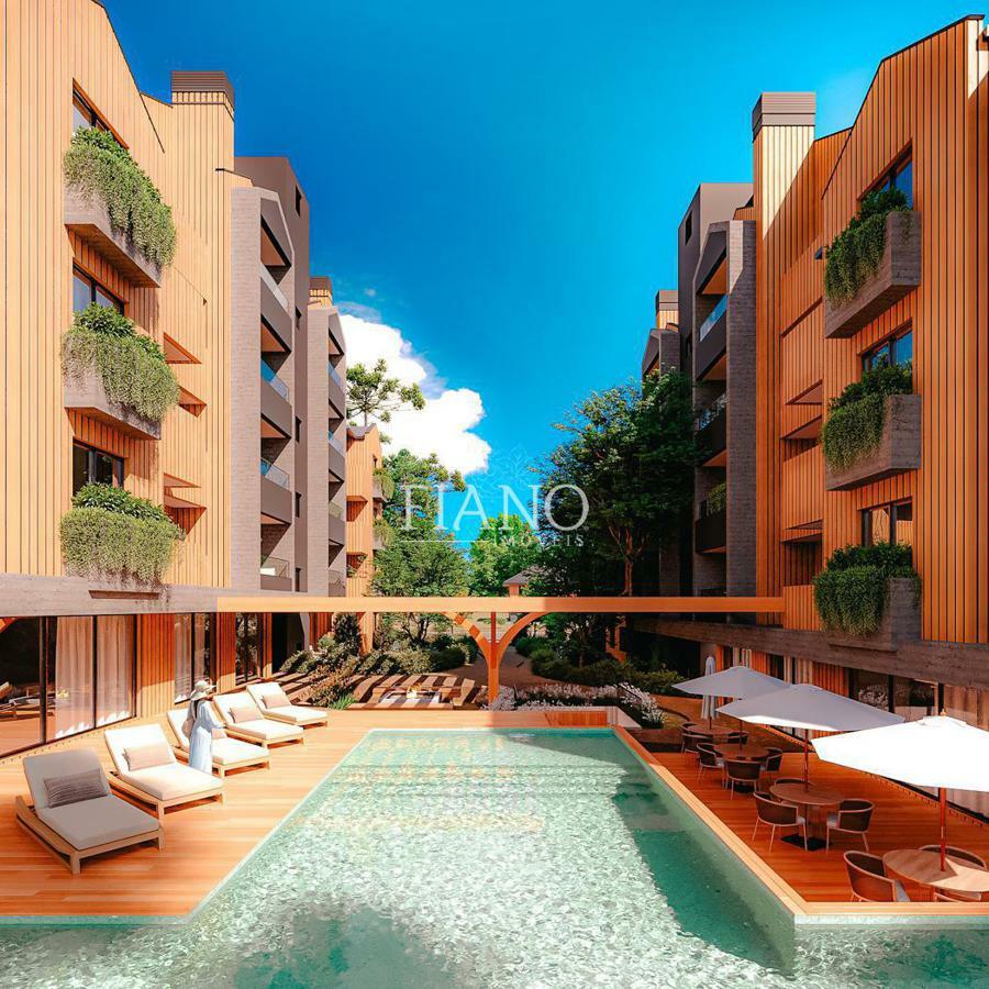 Apartamentos de 1, 2 e 3 dormitórios (sendo 1 ou 2 suítes), banheiro social, cozinha americana, churrasqueira, área de serviço, sala de estar e jantar, sacada, esperas para lareira, água quente e split, e 01 box de garagem.