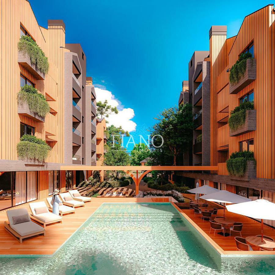 Apartamentos de 1, 2 e 3 dormitórios (sendo 1 ou 2 suítes), banheiro social, cozinha americana, churrasqueira, área de serviço, sala de estar e jantar, sacada, esperas para lareira, água quente e split, e 01 box de garagem.