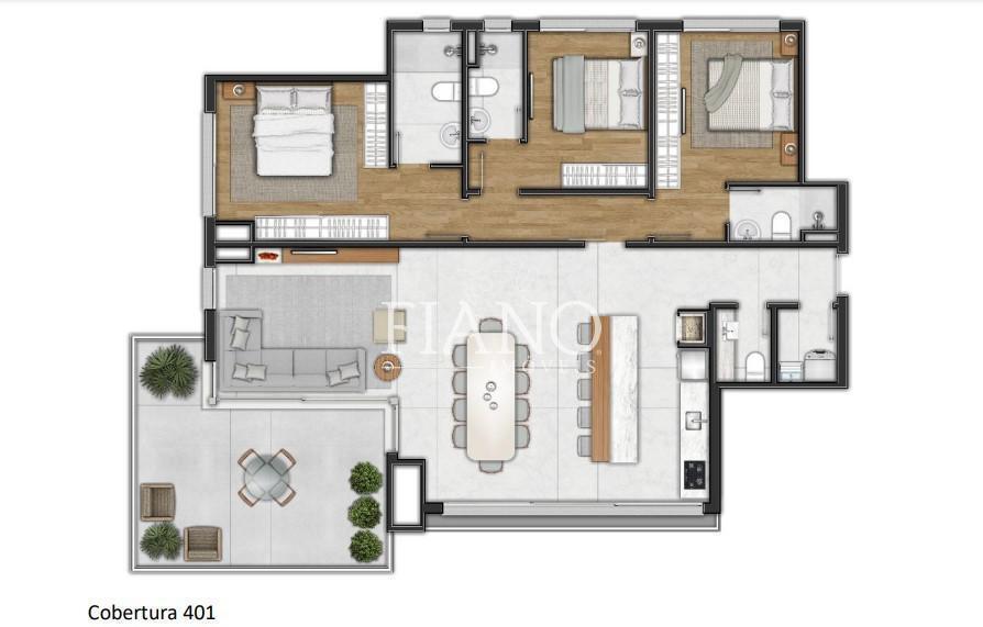 - Revestimentos de alto padrão com porcelanato de grande formato e piso vinílico;