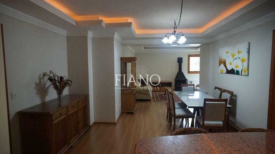 03 dormitórios (01 suíte), sala de estar e jantar, lareira, sacada fechada, cozinha, churrasqueira.