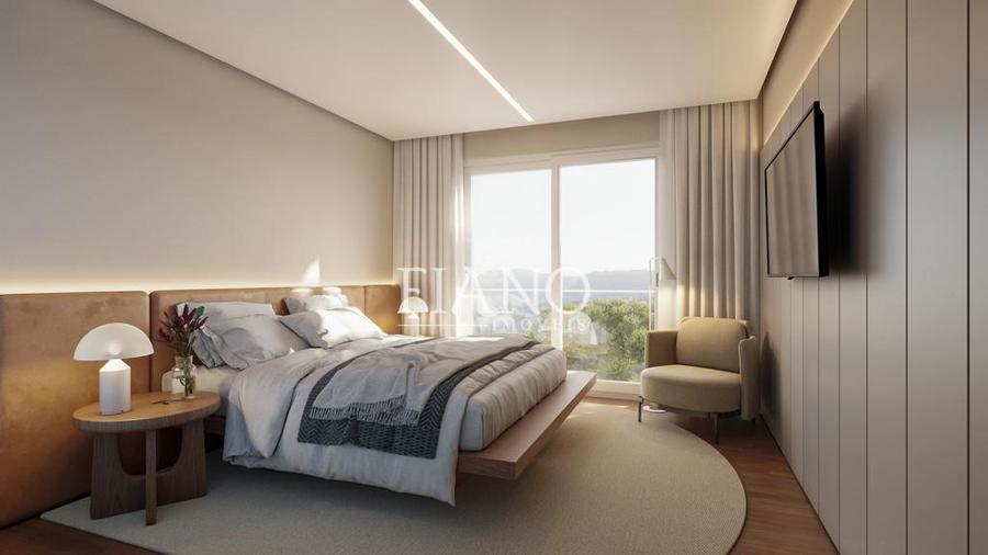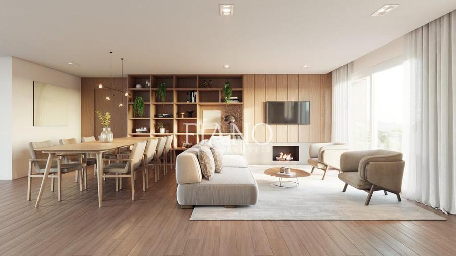 Esperas para calefação, lareira, água quente e split, esquadrias em PVC com vidros duplos, piso laminado e porcelanato.