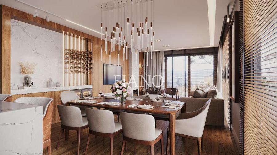 São 03 suítes (sendo 01 suíte-máster com espaço para hidro), living integrado com lareira, cozinha americana com churrasqueira e espera para coifa, área de serviço, fechadura digital e 2 vagas de garagens exclusivas e privativas com espera para carro elétrico.