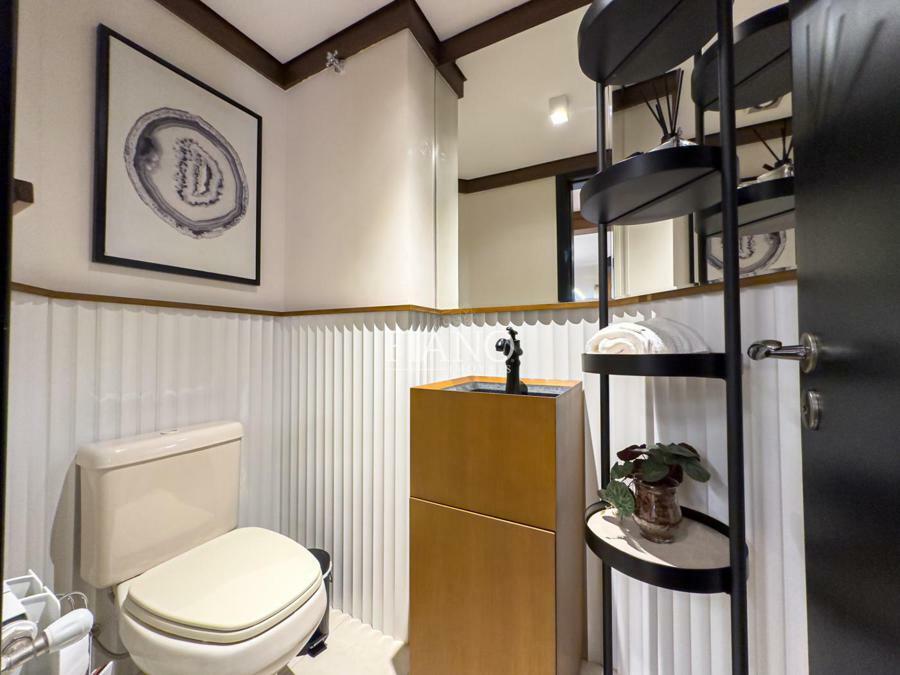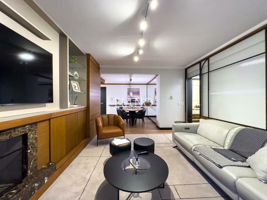A sala contempla um sofisticado estofado da marca italiana Natuzzi com mecanismo de reclinação eletrônico no painel lateral que ativa o apoio para a cabeça, lombar e para pernas, proporcionando um conforto absoluto nos 3 assentos além de uma prática entrada USB para carregar o celular.