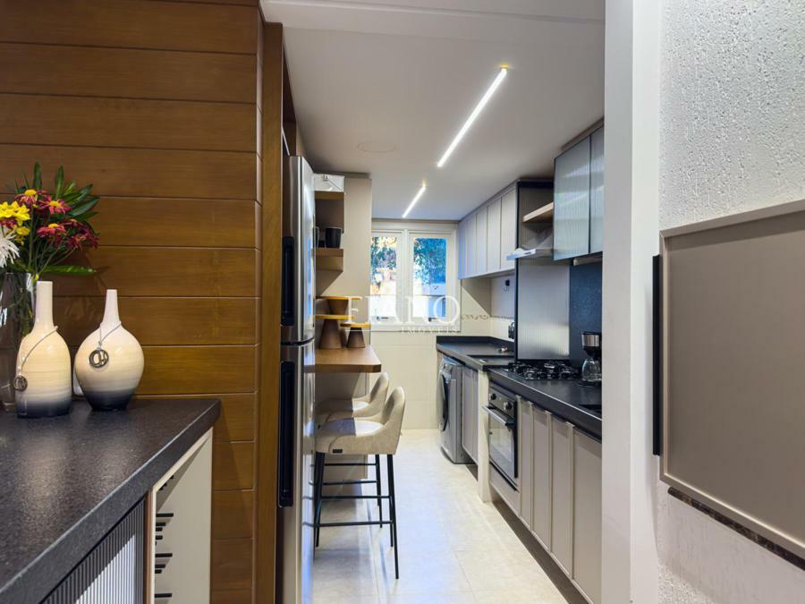 3 dormitórios (1 suíte com sacada), sacada com fechamento em vidro para melhor aproveitamento uma incrível varanda para contemplação e realização das refeições junto à natureza.