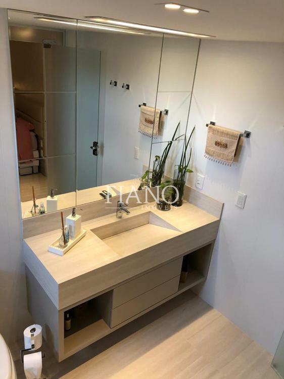 Piso aquecido nos banheiros de todas as TRÊS suítes, bancadas e nichos em porcelanato importado travertino.
