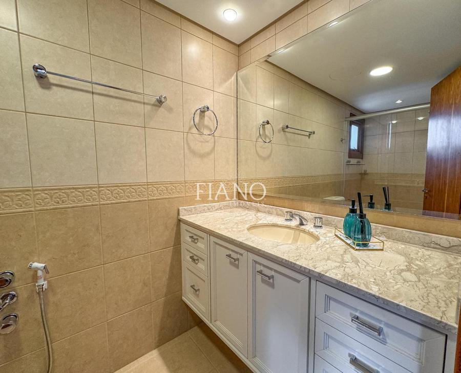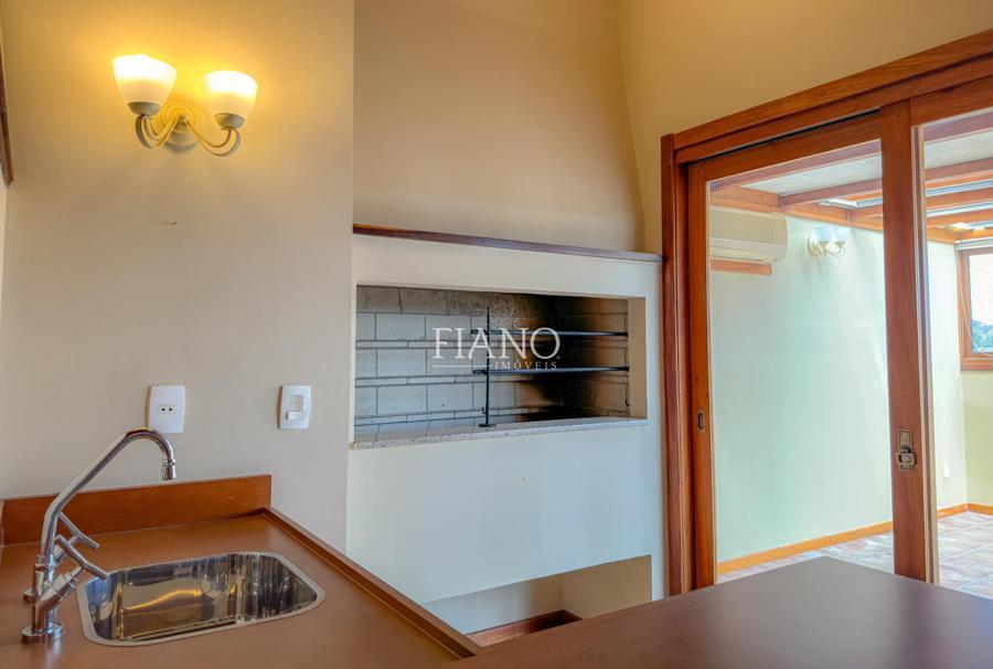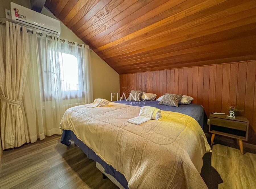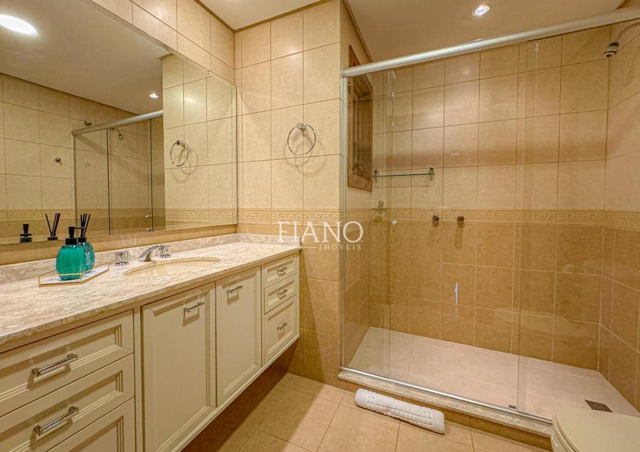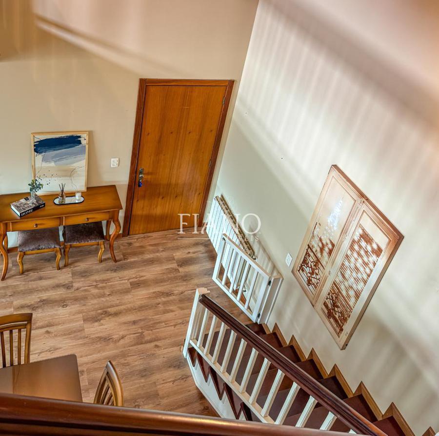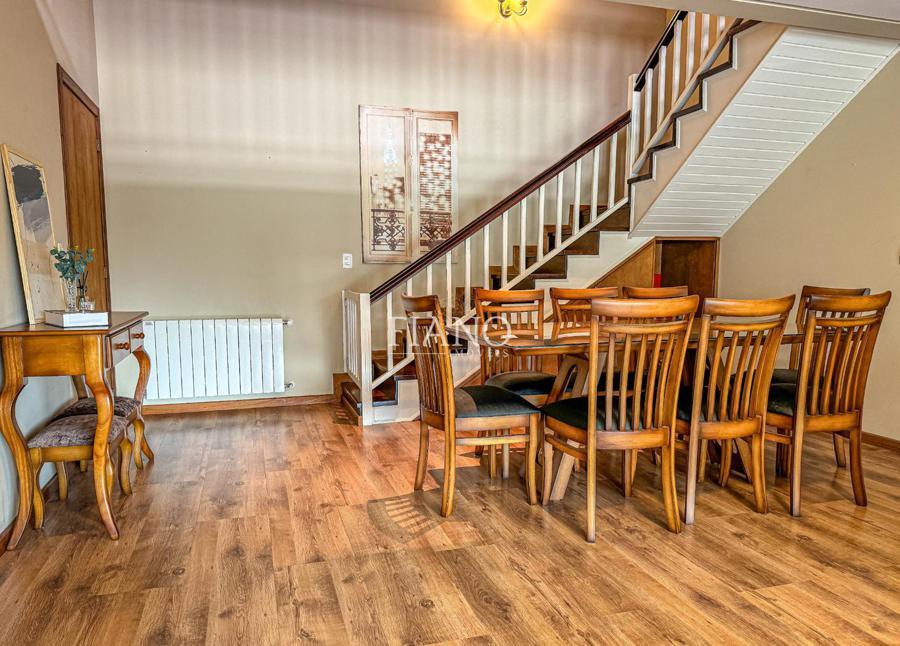 São 04 dormitórios (02 suítes), living integrado estar e jantar com lareira e sacada, banho social, cozinha fechada, área de serviço, estar íntimo com lareira, espaço gourmet com churrasqueira, terraço. Calefação, split e água quente.