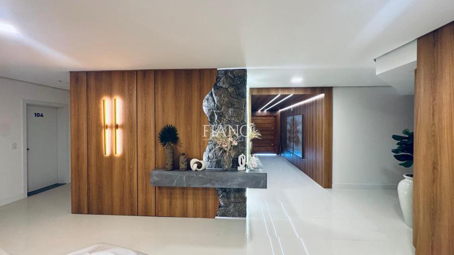 Cobertura de 04 suítes, lavabo, living integrado estar e jantar com sacada, cozinha com churrasqueira, área de serviço, esperas para calefação, lareira, água quente e split, esquadrias em PVC com vidros duplos, piso laminado e porcelanato.