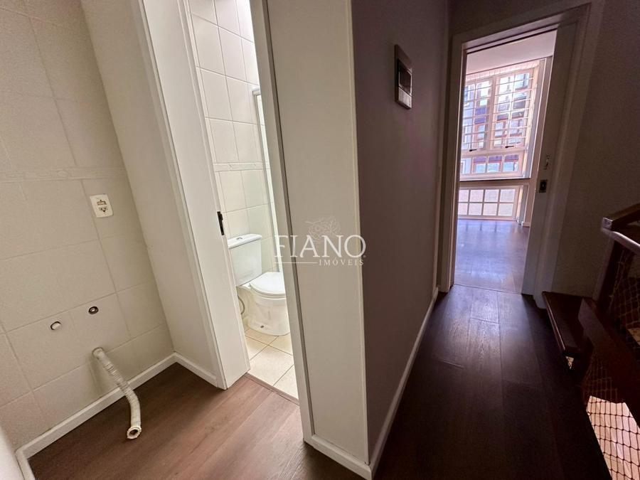 Sala de estar com lareira, cozinha americana com churrasqueira, lavabo, varanda com espera para área de serviço. Banho social.